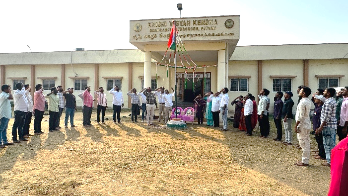 Krishi Vigyan Kendra, Bhadradri Kothagudem celebrated the 77th Republic Day on 26.01.2026 at the KVK campus. On this occasion, Dr. T. Bharath, Programme Coordinator, hoisted the National Flag and addressed the gathering, highlighting the importance of Republic Day and the significance of the Indian Constitution. The programme was attended by teaching and non-teaching staff, RAWEP students, and farmers, who participated enthusiastically in the celebrations. Krishi Vigyan Kendra, Bhadradri Kothagudem scientist’s Sri B. Shiva and Dr. N. Hema Sarat Chandra and with supporting staff Smt. D. Sravani were honoured with the Best Employee Award by the Honourable District Collector and Magistrate Sri Jitesh V. Patil, I.A.S., and Superintendent of Police, Sri Rohith Raj, I.P.S. The awards were presented at Pragathi Maidan, Kothagudem, on the occasion of the 77th Republic Day celebrations.