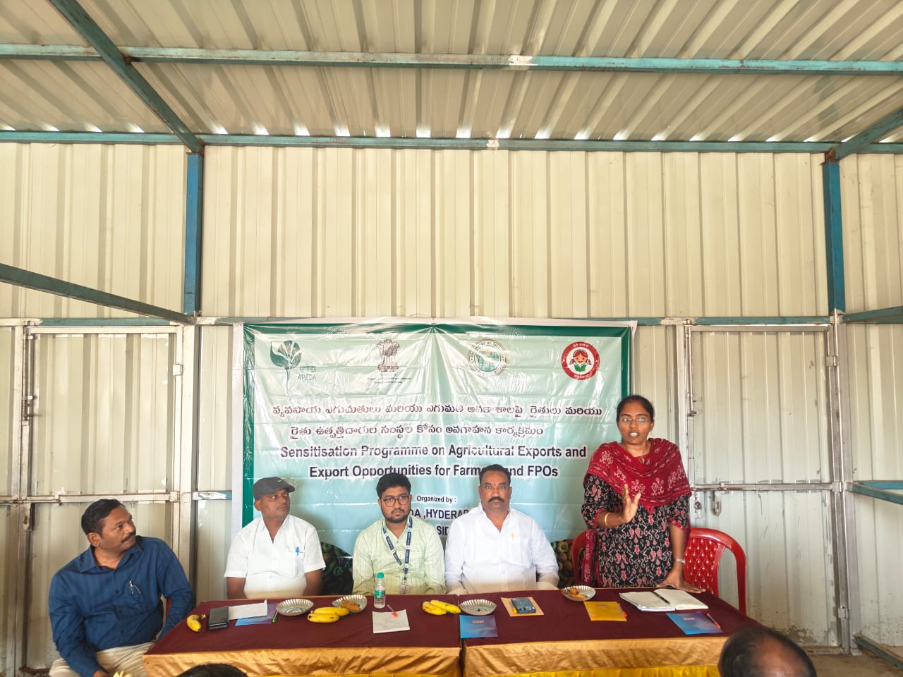 TRVK, Siddipet & APEDA, Hyderabad organized sensitization programme on Agricultural Exports & Import opportunities for Farmer producer organization (FPOs) & Farmers at Alirajpet (V), Jagadevpur (M) on 20.12.2025. In this programme Sri. Md. Abdul Kadhar Pasha, Business Development manager, APEDA explained about the Agricultural and Processed Food Products Export Development Authority (APEDA) is mandated to promote the export of agricultural and processed food products from India by developing and regulating export-oriented production, processing, and marketing. Its mandate includes registration of exporters, formulation and implementation of quality standards, promotion of branding and market access abroad, development of infrastructure such as pack houses and cold chains, providing financial assistance for export promotion, and undertaking market research and capacity building. APEDA also works to ensure compliance with international sanitary and phytosanitary standards, traceability requirements, and sustainability practices to enhance the global competitiveness of Indian agricultural exports and also briefed about export -import policies for FPOs/FPCs, entrepreneurial opportunities in agriculture and allied sectors for FPOs and its importance in timely execution of activities In this programme TRVK, Siddipet Coordinator Dr. Ch. Pallavi , MAO, U. Vasantha rao, AEO, Sharanya and 60 FPO farmers were participated.