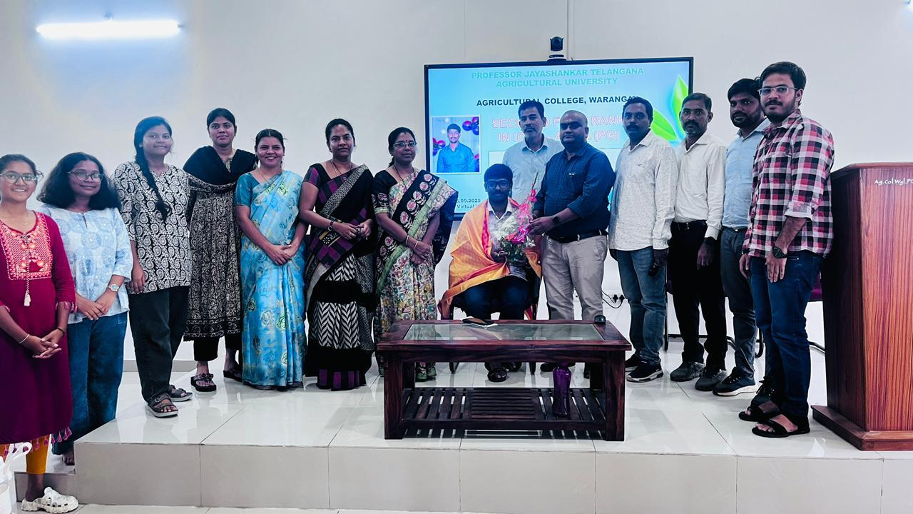 Placement cell of Agricultural College, Warangal has organized an alumni talk on “Secured First Rank in ICAR-AIEEA (PG)- My Strength” by D. Raghu Vamsi of 2021 batch student on 26.09.2025 to the third and final year (AELP batch) students.