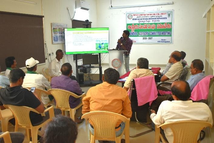 Krishi Vigyan Kendra (KVK), Bhadradri Kothagudem organized a Scientific Advisory Committee (SAC) Meeting at Krishi Vigyan Kendra on 06.01.2026. During the programme Dr. T. Bharath, Programme Coordinator presented the overall KVK activities and crop production work carried out during 2025–26 and the action plan for 2026–27. This was followed by Sri B. Shiva, Scientist who presented the Horticulture activities completed during 2025–26 along with the action plan for 2026–27. Subsequently, Dr. N. Hema Sarat Chandra presented the extension activities undertaken during 2025–26 and the proposed action plan for 2026–27.