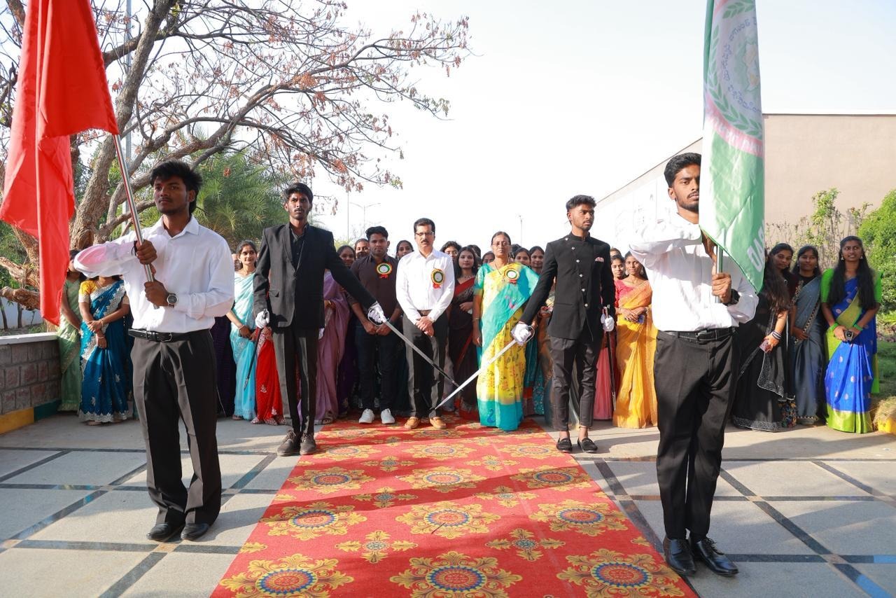 The Chief Guest, Dr. Ch. Venugopala Reddy, Dean of Student Affairs, delivered an inspiring address to the students. He emphasized that students must excel not only in academics but also in extracurricular and co-curricular activities. He strongly encouraged the freshers to develop leadership qualities, innovation, and entrepreneurial skills, stating that students should aim to become job providers rather than job seekers in the future.