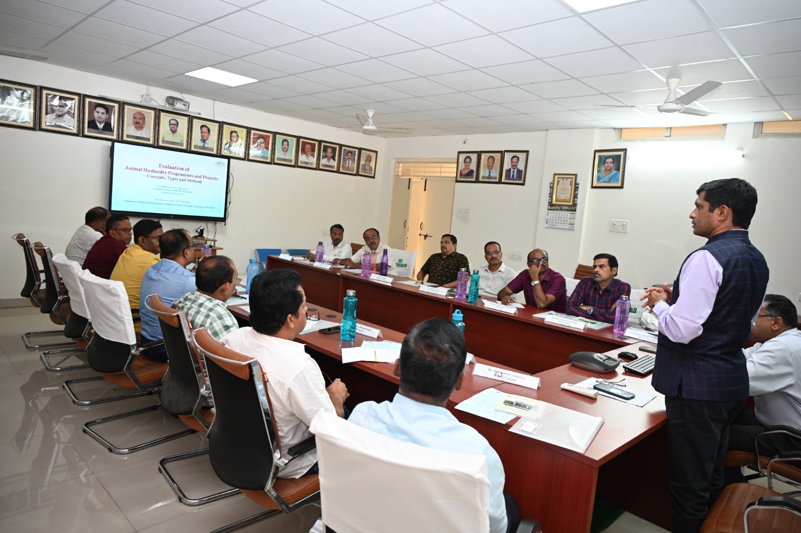 The training on Planning, Monitoring, and Evaluation (PME) of Animal Husbandry Programmes and Projects focuses on building the capacity of officers to design, implement, and assess livestock development initiatives effectively. Participants learn to plan programmes by setting clear objectives, identifying resources, and designing activities aligned with national and local livestock goals. The training also emphasizes the use of tools like logical frameworks, performance indicators, and work plans to ensure efficient resource use and measurable outcomes. Monitoring and evaluation components of the training strengthen participants’ ability to track progress, assess performance, and measure impact using both resource-based and animal-based indicators. Trainees gain practical exposure to methods such as progress reporting, field visits, and data analysis to identify challenges and make timely corrections. By the end of the programme, participants are equipped to ensure the effectiveness, sustainability, and accountability of animal husbandry projects, contributing to improved productivity, disease control, and livelihood enhancement. The Extension Education Institute (EEI), Rajendranagar, Hyderabad has organized On-campus training programme on Planning, Monitoring and Evaluation of Animal Husbandry Programmes and Projects in ARD Sector for the Fisheries and ARD Department officers of Odisha state from 11th -15th November, 2025 at EEI, Hyderabad. The content of the programme was- Over view on Planning, Monitoring and Evaluation of Animal Husbandry Programmes and Projects, Evaluation concepts Types & Methods of Animal Husbandry Programmes and Projects, Developing and Identifying Indicators for Monitoring and Evaluation in Animal Husbandry projects and programmes, Project formulation and Proposal development for Animal Husbandry Programmes and Projects, Hands on Experience in Web site development and Publication of Web Page, Participatory Rural Appraisal (PRA) and Stakeholders consultation in Animal Husbandry Programme and Projects, Field Visit to NRC Meat, Chengicherla, Visit to Farms of PVNRTVU to get orientation on Animal Husbandry Programmes and Projects, Visit to Sid’s farm to understand the planning and monitoring the activities of dairy farm and milk testing procedures, Hands on Training on usage of Plantix app, Development of QR codes, Google Forms, GI Based Planning, Monitoring and Evaluation of Animal Husbandry Programmes and Projects, Impact analysis of Animal Husbandry Programmes and Projects and Gender budgeting and GOI Schemes, and EEI Blog orientation. Dr. M. Jagan Mohan Reddy, Director, EEI, Hyderabad said that, the success and refinement of the pogrammes and projects mainly depends on effective planning, dexterous monitoring and precise evaluation. This will be most applicable for the programmes and projects of Animal Husbandry sector, where Rashtriya Gokul Mission, Livestock Health and Disease Control Programme, Animal Husbandry Infrastructure Development Fund, National Livestock Mission etc are being implemented for the benefit of livestock farmers. The Objectives of the programme were- To know the Concepts of Planning, Monitoring and Evaluation of Animal Husbandry Programme and Projects in ARD Sector, To comprehend the tools and techniques in planning, Monitoring and Evaluation of Animal Husbandry Programme and Projects in ARD Sector, and To understand the logistics in formulation, monitoring & evaluation of programmes and projects in ARD Sector. Skills imparted in the training programme were- Planning skills in formulation of Animal Husbandry programmes and projects, Monitoring skills in making midterm corrections in Animal Husbandry programmes and projects, Evaluation skills in understanding the results of Animal Husbandry programmes and projects, Skill in identifying the indicators of Impact assessment of Animal Husbandry programmes and projects, Creating digital/ online tools for planning, monitoring, evaluation of Animal Husbandry programmes and projects, Skills on Website development with regard to promotion of Animal Husbandry programmes and projects and Skill in preparation of road map under back home planning. Methodology followed in the programme was Presentation by eminent speakers/experts, Interim interactive sessions, Simulation exercises, Brain storming, field visits and Individual and Group assignments. Valediction was presided over by Dr.R.Vasantha, Professor, EEI, Hyderabad and participants felt that the insights gained from this training programme will be highly useful for successful implementation of Animal Husbandry programmes at back home situation. Fourteen officers of ARD Department, Odisha State were attended the training programme, which was coordinated by Dr. M. Jagan Mohan Reddy, Director, EEI, Hyderabad.