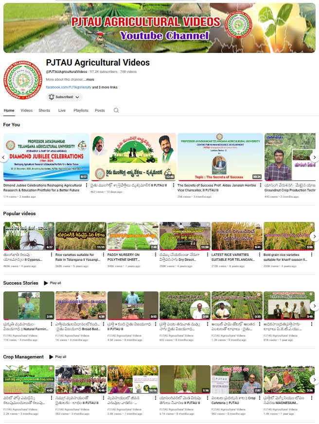 - Regularly update the PJTAU YouTube channel with videos on technologies, University activities, pest/disease advisories, weather-based agro-advisories and farmer success stories.