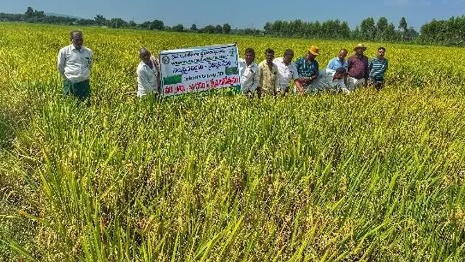 Farmers expressed their happiness and satisfaction with the “Quality Seed for Every Village” programme and appreciated the efforts of KVK in promoting improved varieties. In this programme, Dr. N. Hema Sarat Chandra, SMS (Extension), Agricultural Officer (AO), Agricultural Extension Officer (AEO), and about 20 farmers participated. After the awareness session, participants visited the demonstration fields to observe the crop performance in farmers’ fields.