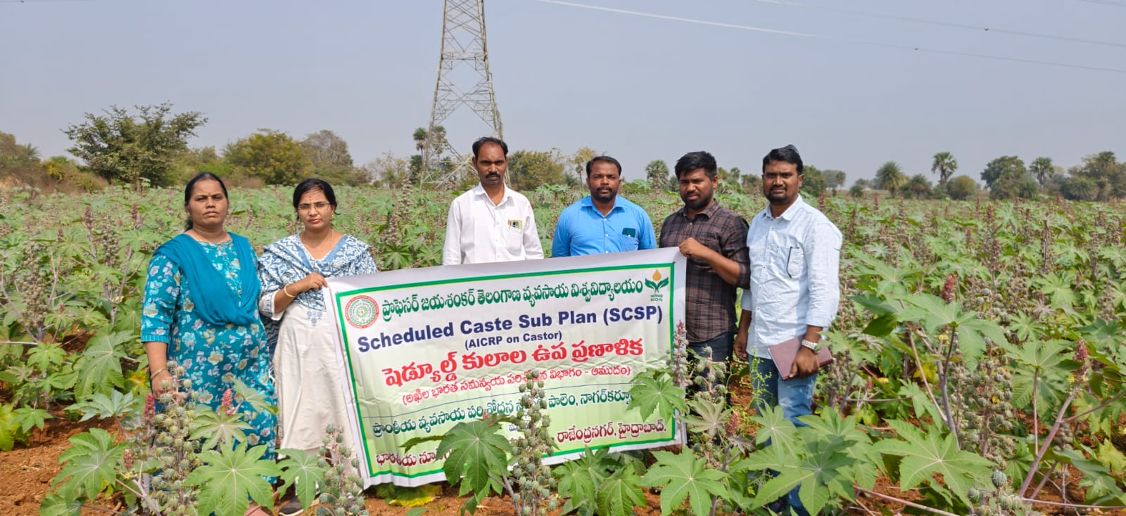 To enhance the area under rabi castor, the AICRP on Castor scheme at the Regional Agricultural Research Station (RARS), Palem conducted 150 Front Line Demonstrations (FLDs) on farmers’ fields with emphasis on adoption of improved production technologies particularly high-yielding cultivars to improve productivity and profitability. In addition, under the Scheduled Caste Sub-Plan (SC-SP) also 50 demonstrations were organized to promote rabi castor cultivation through the dissemination and adoption of improved technologies. In this context, a team of scientists from the AICRP on Castor comprising Dr. K. Sadaiah, Scientist (Plant Breeding), Dr. Kadasiddappa M.M., Scientist (Agronomy), Dr. V. Divya Rani, Scientist (Plant Pathology), and Mrs. G. Madhuri, Scientist (Entomology), visited the farmers’ fields at Panchalingala and Makthal (V & M) of Narayanpet district on 04.02.2026. During the visit, the crop was at the primary to secondary spike stage. Most of the farmers had sown the crop during October, 2025 and were following the recommended management practices properly. It was also observed that the incidence of pests viz., tobacco caterpillar, semilooper and leafhopper was very low and remained below ETL levels. Further, the farmers were advised on necessary management practices for sucking pests, along with precautions to be followed during harvesting and post-harvesting operations.