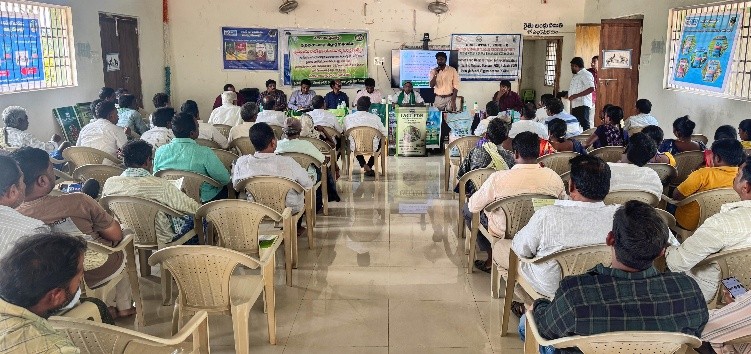 Krishi Vigyan Kendra, Bhadradri Kothagudem organized an awareness programme on fermented organic manure in coordination with Fertilizer and Chemicals Travancore Ltd. (FACT) at Rythu Vedika, Jaganadhapuram Cluster, Mulakalapally, Mandal, Bhadradri Kothagudem District on 11.03.2026. During the programme, Dr. T. Bharath, Programme Coordinator explained the importance of fermented organic manure for improving soil health and sustainable agriculture. He also delivered a lecture under Agricultural Technology Management Agency (ATMA) on the importance of suitable paddy varieties, natural farming, integrated farming system, nano fertilizers and climate-resilient agricultural technologies for farmers. Dr. N. Hema Sarat Chandra, SMS (Extension), briefed the participants about the formation and importance of Farmer Producer Organizations (FPOs) and market-led extension for improving farmers’ income. Sri. B. Shiva, SMS(Horticulture), explained Integrated Crop Management practices in mango, oil palm, and vegetable crops. The programme was attended by Sri. S. Veera Bhadradro, Chairman ATMA, Sri. Ravikumar, Assistant Director of Agriculture, Sri. Rammohan, General Manager, FACT, Sri. Arunkumar, Agriculture Officer, AEOs, village Sarpanches, and about 100 farmers from the cluster.