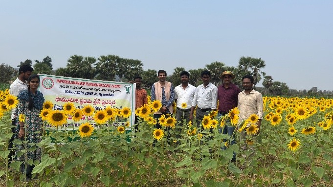 As per the directions of the Hon’ble District Collector Jitesh V Patil, to promote beekeeping as a sustainable livelihood practice, the scientists of Krishi Vigyan Kendra, Kothagudem, Dr. N. Hema Sarat Chandra, SMS (Extension) and Mr. B. Shiva, SMS (Horticulture) along with officials from District Rural Development Agency, Kothagudem and representatives of Humble Bee Company, visited various locations in Gundala, Allapalli and Tekulapally mandals to conduct a feasibility study for the upcoming Beekeeping Project to be implemented through SHGs at the household level. During the visit, the team assessed field conditions, availability of floral resources, suitability of locations and potential beneficiary households on 24.02.2026. The team also interacted with the Hon’ble District Collector and discussed the planning, convergence strategy and phased implementation of the project to ensure sustainability and income generation for rural households. the scientists also visited all sunflower fields supported under CFLD (Oilseeds) programme and recorded the necessary data in the Krishi Mapper application for documentation and monitoring purposes