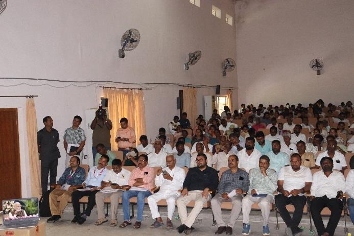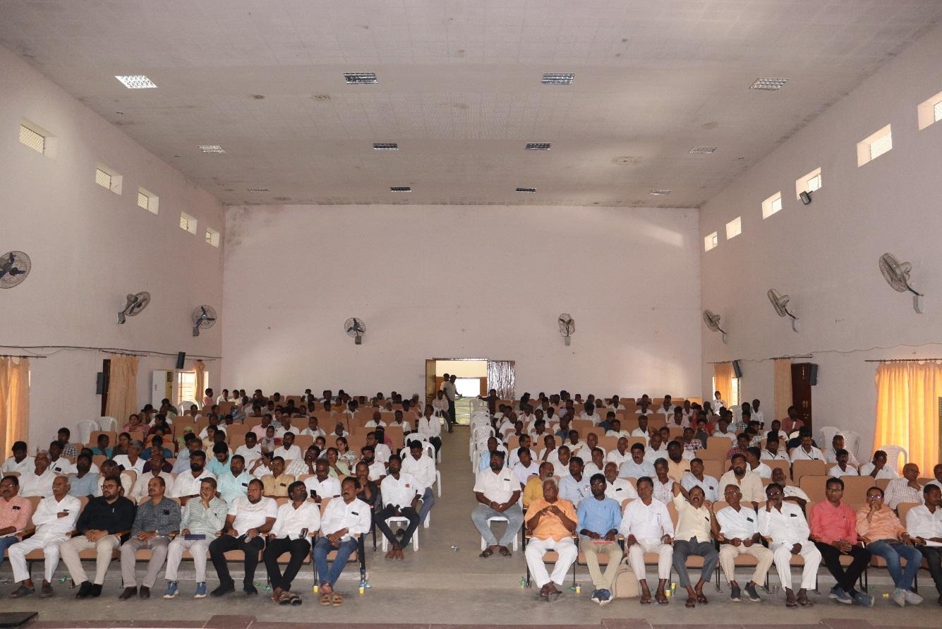 Sri. Vishnuvardhan Reddy, Chairman, BCCB, emphasized the goal of achieving self-sufficiency in foodgrains, pulses, and oilseeds, thereby reducing dependency on imports. Sri,Venkateswarlu, DHO, Dr. Rajini, DFO, Sri. Oblesh, DRDO official, Sri. Chandrashekhar, LDM, and Sri. Satyanarayana, Deputy Director of Dairy Development, shared their insights from their respective departments and encouraged farmers to adopt improved practices in agriculture, horticulture, fisheries, and animal husbandry. The technical session was led by Dr. O. Shaila, SMS (Plant Protection), Dr. Adhi Shankar, SMS (Horticulture), KVK, Palem, Dr. M. Shankar, Scientist (Entomology), Dr. M.M. Kada Siddappa, Scientist (Agronomy), RARS, Palem, and Sri Jagan and Sri Laxman, Horticulture Officers. The session covered various themes including best management practices in Rabi crops, horticultural crops, natural farming, oil palm production and subsidies, and IPDM practices. The programme concluded with a farmer–scientist interaction, during which the current crop conditions were reviewed and farmers’ queries were addressed by the experts. Sri. B. Santhosh, District Collector, Nagarkurnool, Sri. N. Yashwant Rao, District Agriculture Officer, Nagarkurnool, Sri Vishnuvardhan Reddy, Chairman, BCCB, Sri,Venkateswarlu, DHO, Dr. Rajini, DFO, Sri Oblesh, DRDO official, Sri Chandrashekhar, LDM, and Sri Satyanarayana, Deputy Director of Dairy Development, Dr. O. Shaila, SMS (Plant Protection), Dr. Adi Shankar, SMS (Horticulture), KVK, Palem, Dr. M. Shankar, Scientist (Entomology), Dr. M.M. Kada Siddappa, Scientist (Agronomy), RARS, Palem, and Sri Jagan and Sri Laxman, Horticulture Officers, All the supporting staff of KVK, Young professionals, 343 farmers, 124 farm Women thus a total of 522 members were participated.