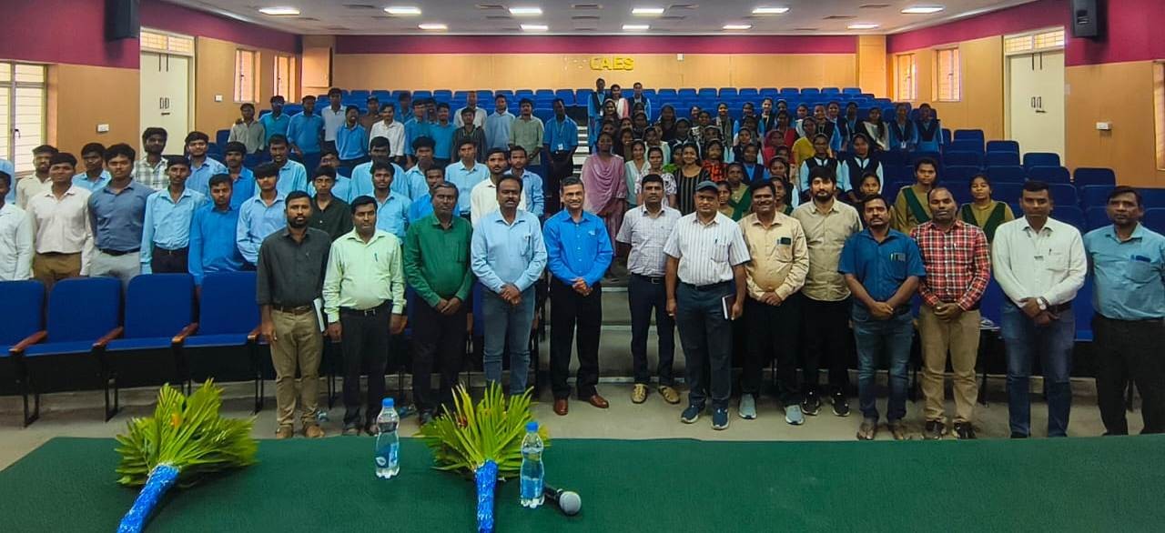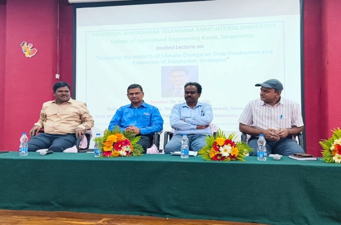 Professor Dr. Srinivasulu Ale, Agrohydrology Specialist from Texas A & M AgriLife, Vernon, USA, visited the College of Agricultural Engineering, Kandi, Sangareddy on 14.11.2025 for an invited lecture. Er. M. Srinivasulu, Assistant Professor & Head (SWCE), welcomed the chief guest to the dais and presented a brief introduction about his academic and research background. Dr. R. Swamy, Associate Dean, College of Agricultural Engineering, Sangareddy, addressed the gathering and highlighted the achievements of the chief guest. During the lecture, Dr. Ale elaborated on critical issues such as declining crop productivity, rising temperatures, and their combined effects on agricultural systems. He provided valuable insights into the impacts of climate change on crop production and emphasized the need for adopting suitable adaptation strategies. He also guided students on research opportunities, career prospects, and higher education pathways, particularly in the USA. Dr. Ale highlighted several emerging fields, including Agricultural Engineering, Agrohydrology, Climate Modeling, Water Resources Management, and Data Analytics. He emphasized the importance of developing innovative technological solutions to address challenges associated with future climate change scenarios. Approximately 150 students and faculty participated actively, contributing significantly to the success of the programme.