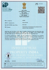 Composition for printing and paint formulation there of”, Patent no. 428588 date 8th sJan 2022