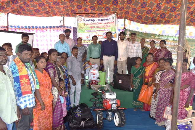 KVK, Bhadradri Kothagudem, Programme Coordinator Dr. T. Bharath along with Sri. V. Baburao, DAO, Bhadradri Kothagudem District distributing Agricultural inputs to farmers and farm women
