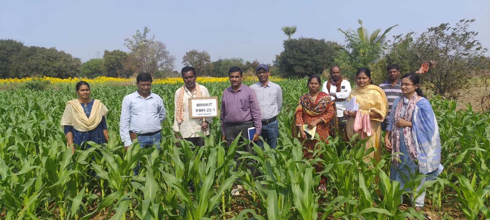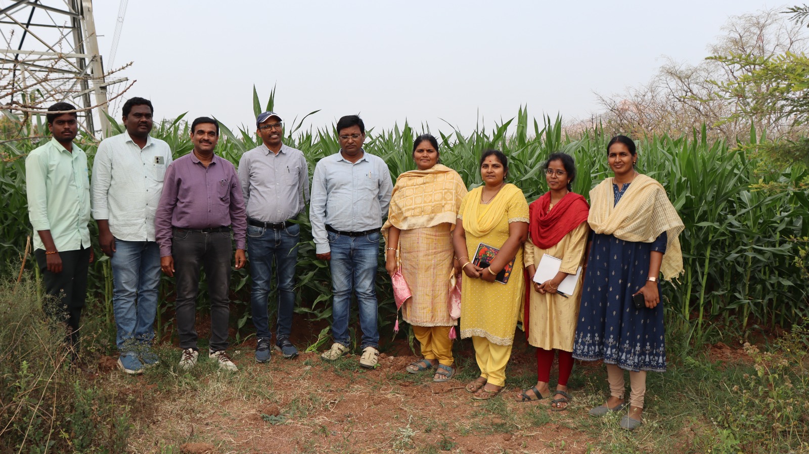 Dr. D. Bhadru, Principal Scientist (Maize & Millets), visited the maize minikit KMH 22-1 at Gussapur village, Siddipet Rural Mandal, Siddipet district on 22.01.2026 along with Dr. Y. Chandra Mohan, Director, ARI, Dr. B. Mallaih, Principal Scientist (Plant Pathology), Dr. D. Sravani, Scientist (Plant Breeding), Dr. Ch. Anusha, Scientist (Entomology) of MRU, ARI, Rajendranagar, Dr. A. Saritha, Scientist (Plant Breeding), ARS, Tornala, and Ms. Navya, AEO, Gussapur. During the visit, the team evaluated the growth and performance of the maize minikit, assessed fall armyworm incidence and interacted with farmers to record their feedback and field-level constraints. During field visits to maize crop across Siddipet and Hanamkonda districts, detailed interactions were held with farmers on major production constraints, including weed infestation, fall armyworm damage and post-flowering stalk rot. Farmers were also sensitized on the importance of maize cultivation and the growing demand for maize grain, particularly in view of its expanding use in bioethanol production. Later, Dr. D. Bhadru, Principal Scientist (Maize and Millets) visited ARS, Tornala for a technical inspection of Maize Breeding, Agronomy and Entomology research, reviewed ongoing experiments, interacted with scientists, and provided valuable guidance on maintenance breeding, hybrid development and improved production and protection technologies and also visited the Karimnagar Makka certified seed production fields at Mulkanoor village of Bheemdevarapalli Mandal Hanmakonda district along with the Scientists of ARS, Karimnagar .