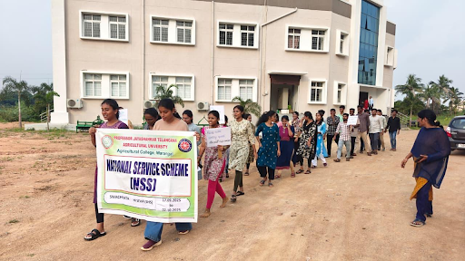 Rally on cleanliness awareness under Swachhata Hi Seva campaign 2025 by Agricultural College, Warangal students