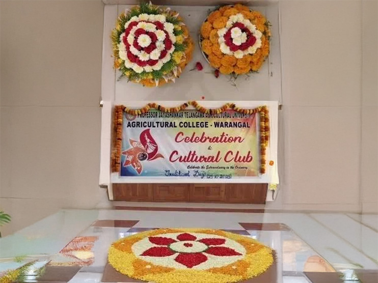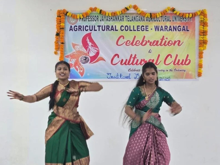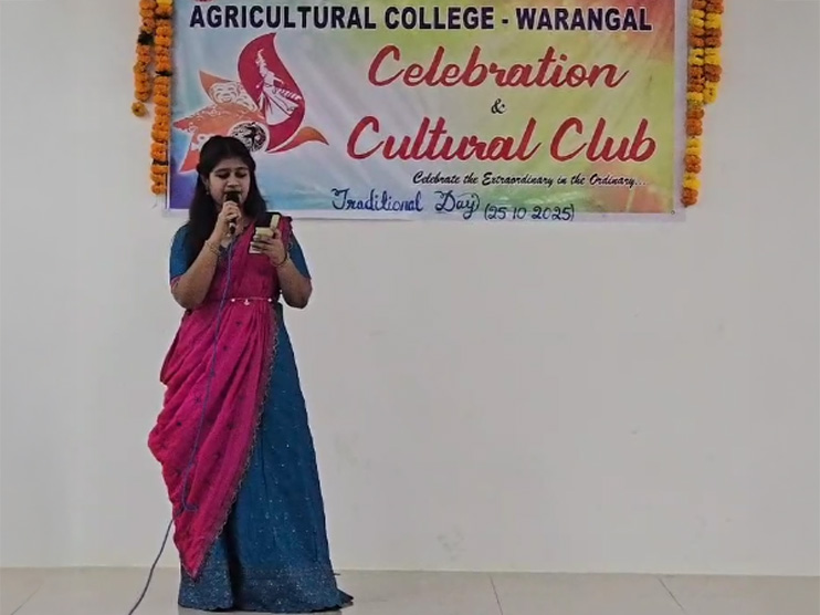 The Celebrations and Cultural Club of Agricultural College, Warangal celebrated Traditional Day on 25th October, 2025, at the college campus on the eve of International Kalakarula Day. The event was planned with an aim to reflect and promote India’s rich cultural heritage and traditions among students and nurture appreciation of our roots. The special day allows students to express pride in their heritage by wearing traditional attire and participating in cultural activities. It’s a day where students and faculty come together to honor and showcase the diverse traditions, attire, and customs of different regions. Traditional Day also brings joy, color, and a sense of belonging to the college campus.