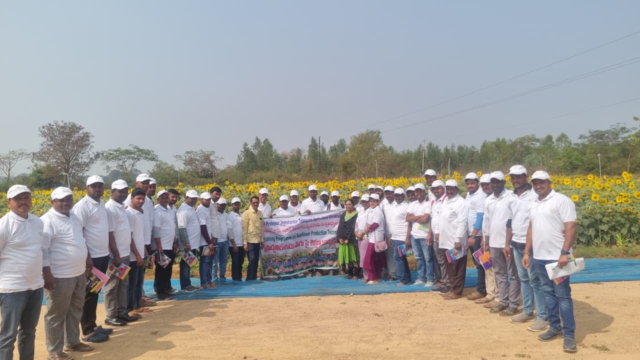 A Training programme on “Best management practices in Sunflower” was organized by Agricultural Research Station, Tornala to input dealers under DAESI program (Diploma in Agricultural Extension Service for Input Dealers) on 05-02-2026 at ARS, Tornala. As a part of programme, Dr. G. Santhosh Kumar, Scientist(Agro.) and Head, ARS, Tornala, has welcomed the DAESI batch and gave a brief note about ARS followed by the mandate of the all three institutes (ARS, APT & TRVK) in Tornala with an overview of soil, water conservation technologies, different crops & experiments and also explained about cultivars and exhibits displayed in the information Centre of ARS, Tornala. He also enlightened on the importance of oilseeds in crop diversification and scope of oilseeds production in alternate cropping system and in paddy fallows. Dr. D. Swetha, Scientist (Agronomy), ARS, Tornala explained about different oilseed crops mainly sunflower and groundnut and production technologies such as suitable crop varieties or hybrids, water and weed management in oilseeds and INM and IPM to be followed in oilseed crops, importance of secondary and micro nutrients especially sulphur and borax in oil seed crops which is useful for improvement in oil content and seed filling in oilseed crops. And discussed about opportunities of mechanization in oilseed cultivation and its advantages such as labour and time saving. Later, she also enlightened about the importance of meteorological aspects in relation to the crop growth and development and how to measure the weather parameters with help of meteorological observatory followed by exposure visit to meteorological observatory at B block in ARS, Tornala. This programme was attended by 38 no. input dealers of different mandals of Siddipet district and Sri. Shankar Rao, Retd A.D.A, Coordinator of DAESI batch.