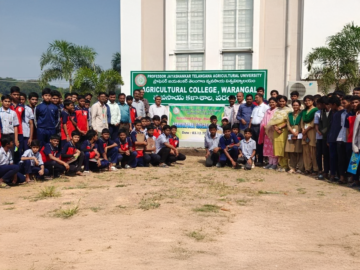 Agricultural College Warangal has celebrated “Agricultural Education Day” to commemorate the birth anniversary of first President of Independent India and Union Minister of Agriculture, Bharat Ratna, Dr. B. Rajendra Prasad. The novel programme initiated across the country, with the objective of exposing the school going students to various facets of agriculture and its relevance to country’s development, inspire and attract them towards agriculture, so that they develop interest in agriculture and allied subjects, choose professional career after schooling in some of these courses, engage themselves in agriculture and related activities. On the occasion, the students from nearby schools were invited and created awareness on various facets of agriculture, a field visit was organised on the vermicompost unit, crop cafeteria and all the labs existing in the college were allowed for the students to have a glance. On the occasion, various competitions were conducted to the students and prizes were announced. The programme was coordinated by the final year –AELP batch students under the guidance of the faculty. About 396 students and 16 school staff members from different schools have participated in the programme. Various competitions like Essay writing, Quiz, etc. were conducted to the students and prizes were distributed to the school students.