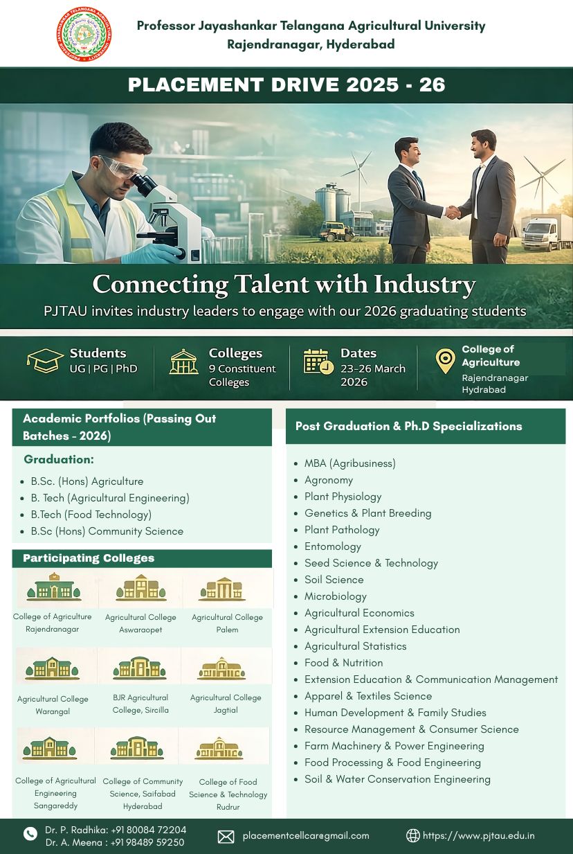 Telangana state has considered agriculture as its primary goal to improve farmer community wellness, educate on latest technical farming knowledge, train farmers to boost the agricultural production and productivity. Read more..
