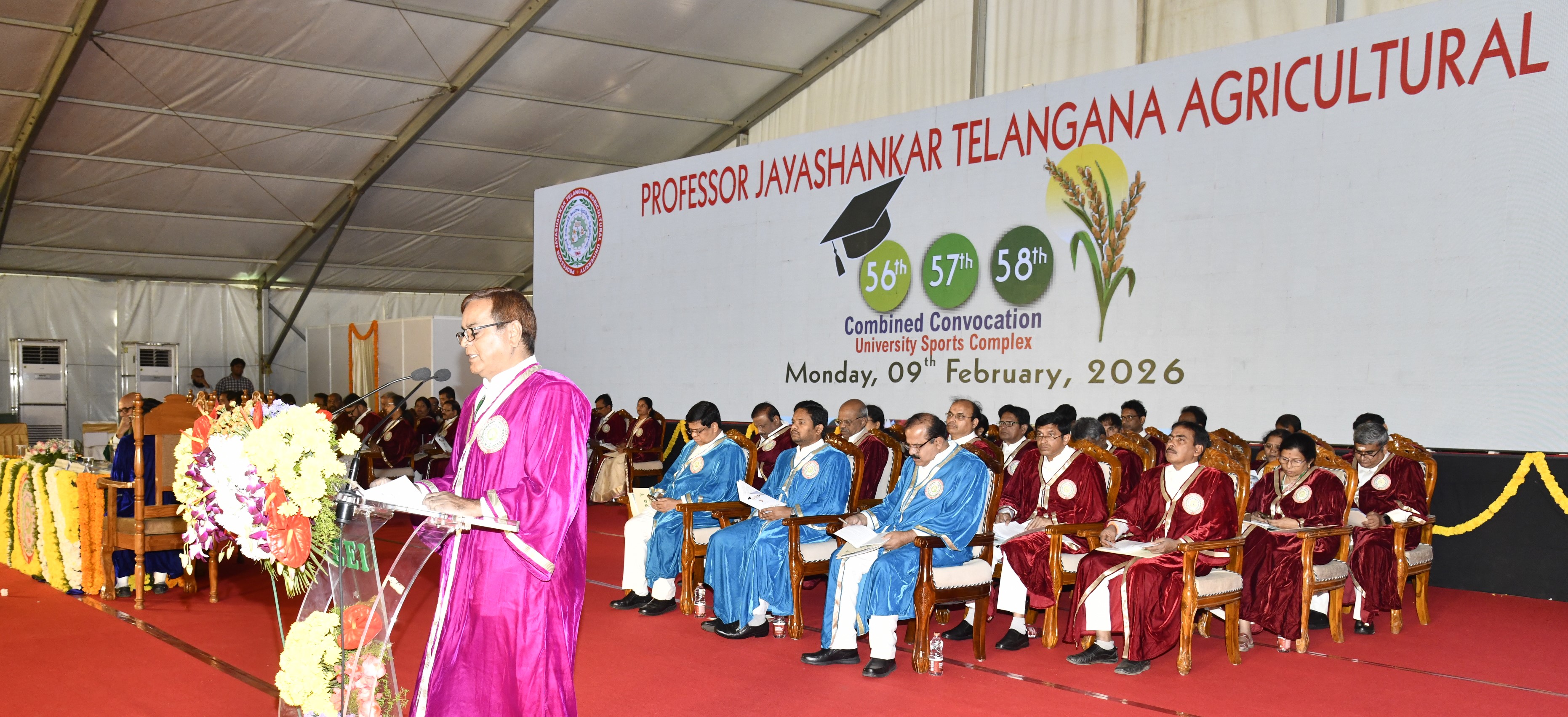 The 56th, 57th & 58th combined Convocation of PJTAU held on 9th Feb 2026 at the University Sports Complex, Rajendranagar, Hyderabad.