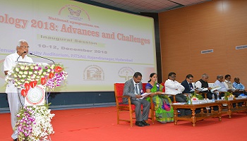 A Three day National Symposium on " Entomology 2018: Advances and Challenges" begins at PJTSAU on 10-12-2018 at the University Auditorium, Rajendranagar. Dr. S.N Puri, Former Vice Chancellor, Central Agricultural University, Imphal and President, The Entomology Society of India has attended as Chief Guest, Dr. V Praveen Rao, VC PJTSAU has presided the inaugural session. Dr. S Raghuvardhan Reddy, Former Vice Chancellor, ANGRAU and president Agri biotech foundation, Dr. H.C Sharma, Vice Chancellor, Y.S Parmar, Horticultural University, Himachal Pradesh, Dr. Krishna kumar, Dr. Anitha Koduru, Dr. T.V.K Singh, Dr. Bentur, Dr. J Sathyanarayana were present.