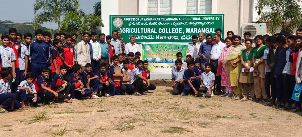 Agricultural College Warangal has celebrated “Agricultural Education Day” to commemorate the birth anniversary of first President of Independent India and Union Minister of Agriculture, Bharat Ratna, Dr. B. Rajendra Prasad. The novel programme initiated across the country, with the objective of exposing the school going students to various facets of agriculture and its relevance to country's development, inspire and attract them towards agriculture, so that they develop interest in agriculture and allied subjects, choose professional career after schooling in some of these courses, engage themselves in agriculture and related activities. On the occasion, the students from nearby schools were invited and created awareness on various facets of agriculture, a field visit was organised on the vermicompost unit, crop cafeteria and all the labs existing in the college were allowed for the students to have a glance. On the occasion, various competitions were conducted to the students and prizes were announced. The programme was coordinated by the final year –AELP batch students under the guidance of the faculty. About 396 students and 16 school staff members from different schools have participated in the programme. Various competitions like Essay writing, Quiz, etc. were conducted to the students and prizes were distributed to the school students.