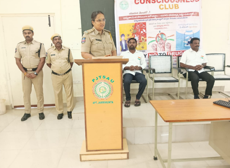 On 15.08.2025, the Excise Department, Government of Telangana has conducted a awareness programme on “Anti Drug awareness programme under Consciousness Club” at Agricultural Polytechnic, Jammikunta involving staff and students. Introductory remarks were given by Principal and staff. Smt. Madhavi Latha, CI, Excise Department, Jammikunta has briefed on awareness about the use of drugs in youngsters and given measures for stopping consumption, supply and spread of drugs in the society. Sri Peddanna, Constable, Excise Department, Jammikunta has taken Oath from staff and students of the Agricultural Polytechnic, Jammikunta. Dr. O. Sampath, Principal I/c has thanked the Excise Department officials for conducting the awareness programme at APT, Jammikunta. Sri R. Prasad Rao, Agricultural Officer & Officer-in-charge (Student Affairs) and Sri K.S. Kiranoday Kumar, Senior Assistant of the college attended programme.