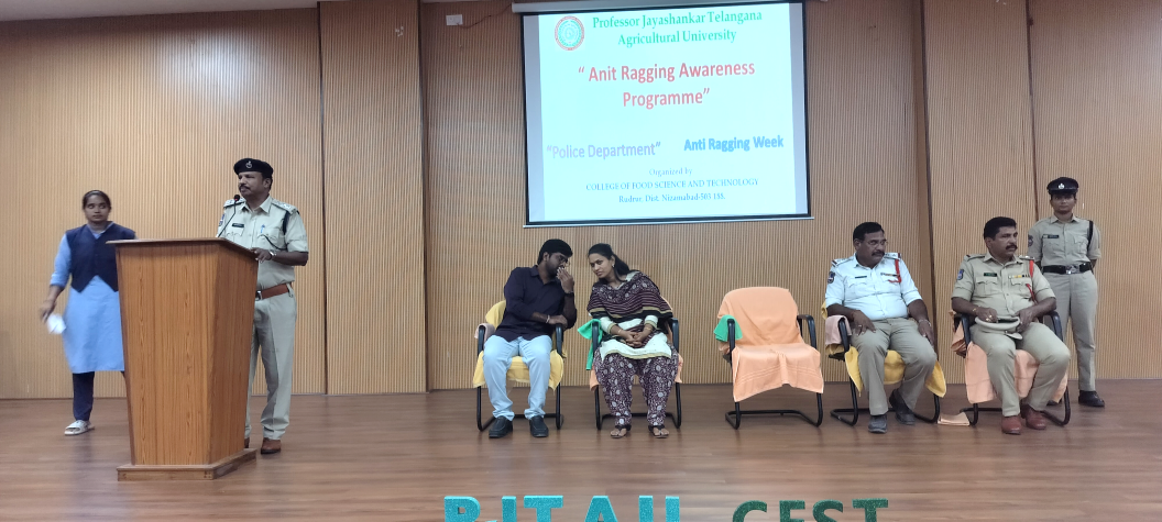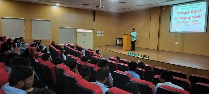On 12 August 2025, the College of Food Science and Technology (CFST), Rudrur, observed Anti Ragging Day with active participation from all teaching staff, non teaching staff, and students. Mr. P. Shiva Kumar, Assistant Professor & Officer In charge of Student Activities (OISA) addressed the gathering, underscoring the importance of the event. He highlighted the severe consequences of ragging, detailed the planned activities for the upcoming Anti Ragging Week, and set a tone of awareness and responsibility. Awareness video messages issued by the University Grants Commission (UGC), including a message by the UGC Chairman Jagadesh Kumar were played to emphasize the gravity of ragging and its legal and ethical consequences. The Associate Dean, Dr. K. Venkat Reddy, delivered a motivating appeal, encouraging all students to actively reject ragging in any form and to contribute to creating a safe, respectful, and ragging free campus environment. The program concluded with a vote of thanks delivered by Mr. P. Shiva Kumar, Assistant Professor & OISA.