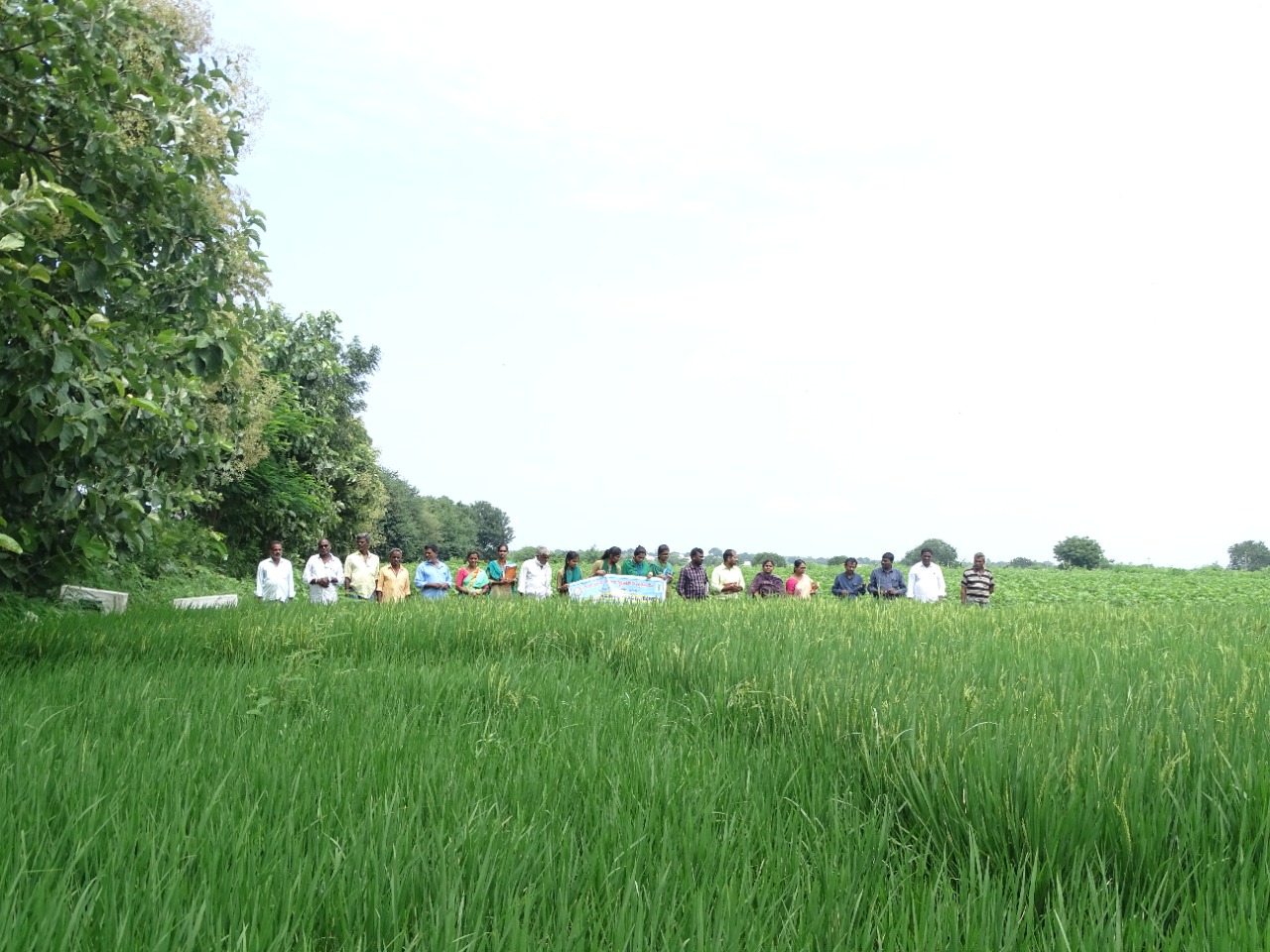 Agricultural Research Station, Karimnagar organized demonstration on IPM in Cotton, visit to Minikit Entries and Field Diagnostic Visit at Adopted Village Nagulamallial Village of Kothapally Mandal on 23rd September, 2022. The Principal Scientist (Agro.) and Head, Dr.G.Manjulatha addressed the farmers on the significance of Integrated Pest Management in Cotton. Dr. M.Rajendra Prasad Scientist (TOT) has demonstrated the farmers the various mechanisms of integrated pest management beginning from the installation of pheromone traps, seed treatment, trichocards, stem application, etc. practically in the field of Sri. Nampally Komaraiah. The maize minikits, DHM-182 of Maize Research Centre, Rajendranagar has been visited in the field of Sri Uppu Shekar and the crop is good and is at hard dough stage and there is infestation of cob borer. Field Diagnostic Visits were taken up in cotton, maize and paddy and the need based suggestions for the control were given to the farmers. The Agricultural Extension Officer, Sri Lalitha, Village Representatives, Sarpanch Sri. Nayani Prasad and around 50 farmers participated in the programme.