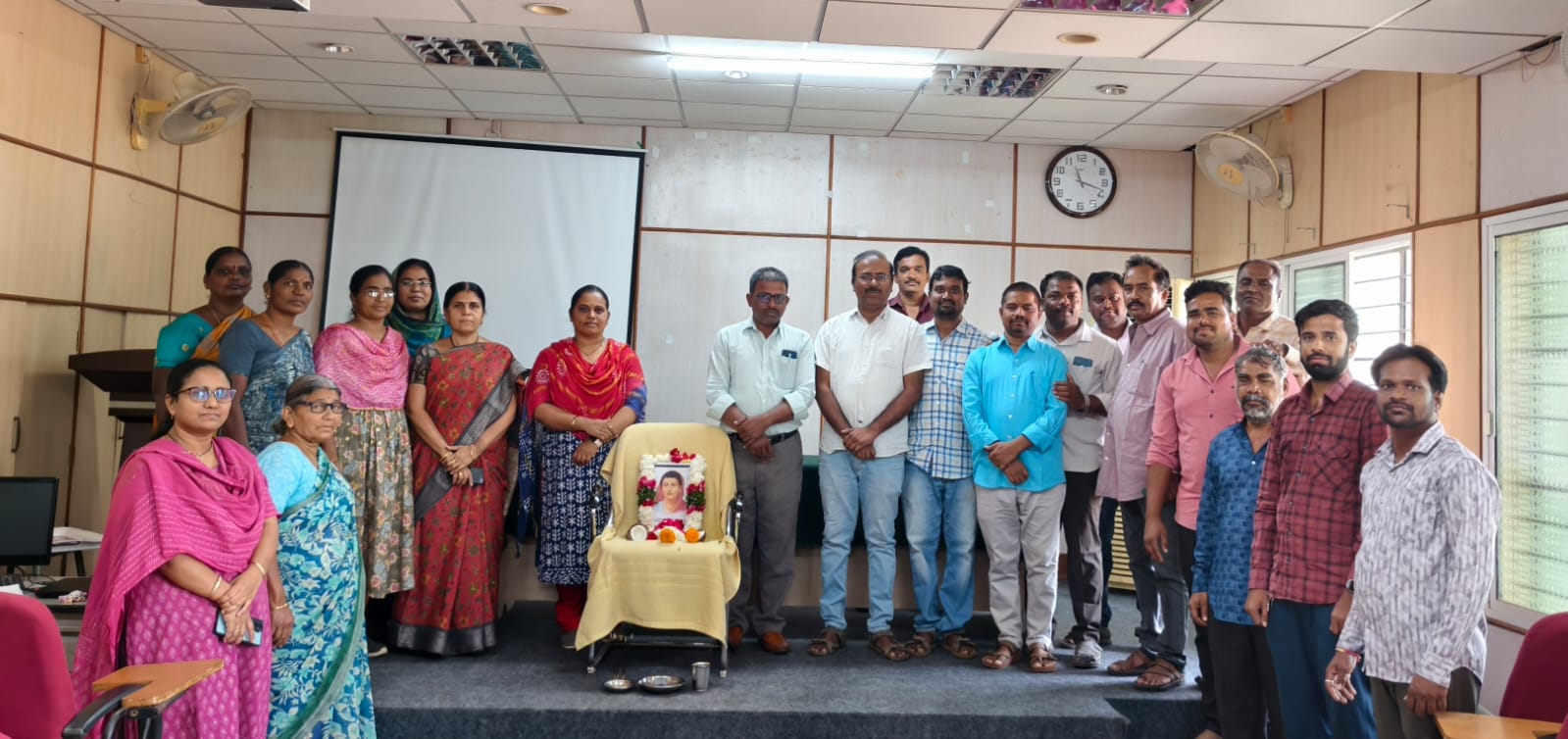 The 195th Birth Anniversary of Smt. Savitribai Phule, India’s first woman teacher and a renowned social reformer, was celebrated with due respect and enthusiasm at the Regional Agricultural Research Station (RARS), Palem on 3rd January, 2026. The programme commenced with the garlanding of the portrait of Smt. Savitribai Phule by Dr. A. Padmasri, i/c ADR. Later, all the teaching and non-teaching staff offered floral tributes as a mark of respect and gratitude to Smt. Savitribai Phule. The programme followed by a brief introduction highlighting her invaluable contributions to women’s education, social equality, and empowerment. The teaching, non-teaching and ministerial staff of RARS, Palem were participated in the event.