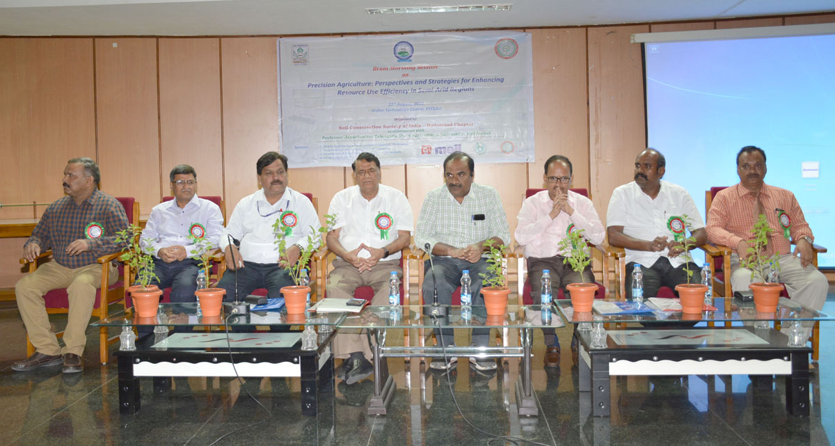 Brain Storming Session on "Precision Agriculture: Perspectives and Strategies for Enhancing Resource Use Efficiency in Semi - Arid Regions" was held on 21.08.2019. The program was jointly organised by the Soil Conservation Society of India, Hyderabad Chapter and Professor Jayashankar Telangana State Agricultural University(PJTSAU), at Water Technology Center Auditorium, Rajendranagar,Hyderabad. Dr. A.Manohar Rao, Member Board of Management , PJTSAU, Dr. K Srinivas Reddy, Chairman, SCSI, Dr. Sadasivarao, Dean of Agril Engineering, Dr. G.Manoj Kumar, Secretary, SCSI, Dr. I.M. Mishra, Head DAE, IARI, Dr. TBS Rajput, Ex PD Emiritus Prof, IARI,Dr. Man Singh, PD -WTC IARI were participated.