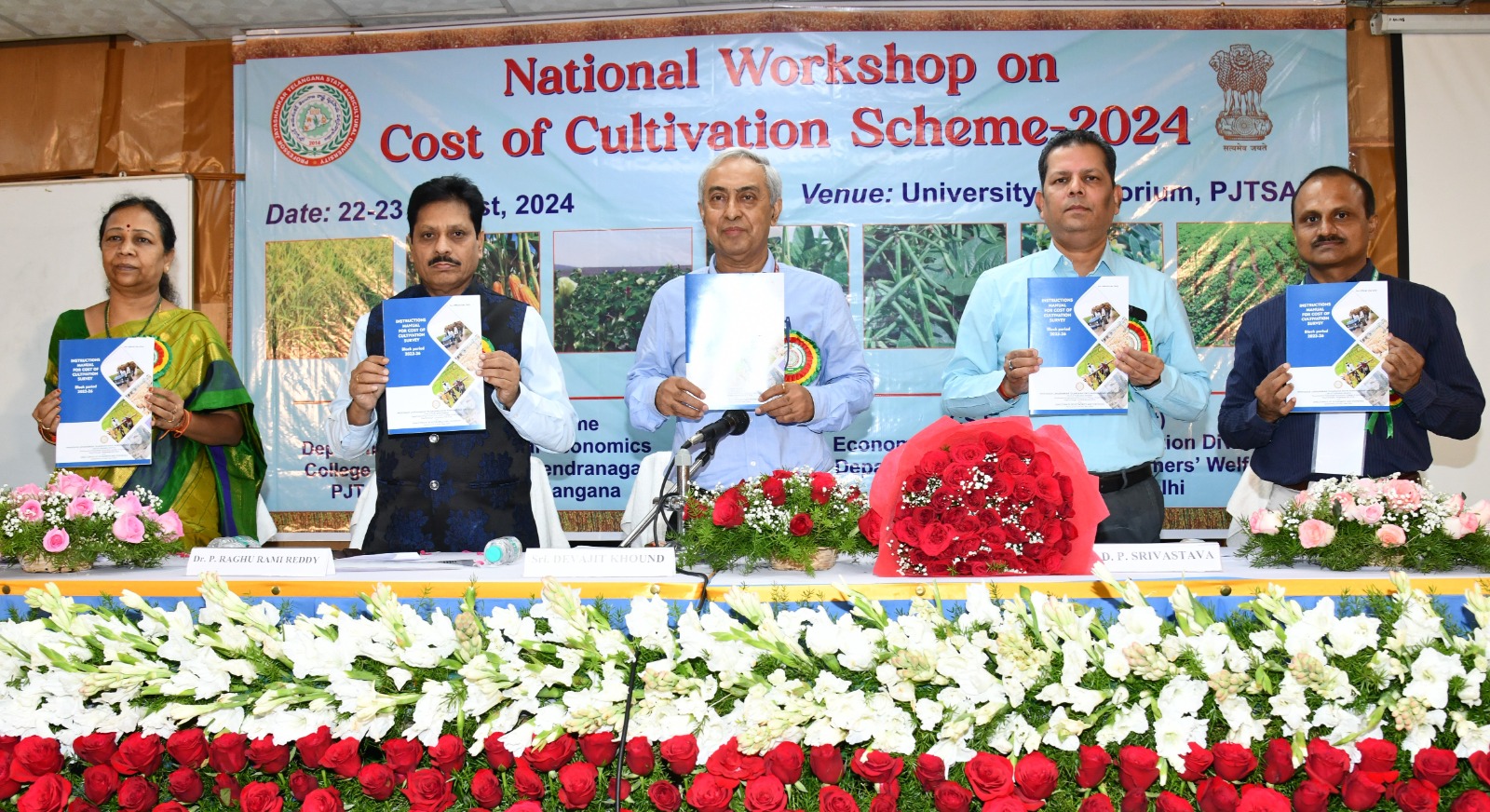Sri Devajit Khound, Principal Economic Advisor at ES&E, MoA&FW, GoI, and the chief patron of the workshop, emphasized the critical role of the comprehensive Cost of Cultivation Scheme (CCS) in determining the Minimum Support Price (MSP), a unique pricing mechanism existing in India. Sri Khound ji stated that the accuracy of MSP is directly linked to the precision of CCS data, which can only be ensured through dedicated and sincere efforts of CCS staff, appealing them to work as equals to farmers rather than superiors and concluded by stating that farmers, “Annadata is our God”. Sri Dhananjay Prasad Srivastava, Advisor, MSP Unit, ES&E Division, MoA&FW, GoI stated that CACP produces 4 important reports including MSP of 22 different crops based on the CCS data benefiting 1 crore 70 lakh farmers by issuing 2.5 lakh crore rupees under MSP for 1000 lakh mt produce. Dr. P. Raghu Rami Reddy, Registrar & Director of Research, PJTSAU, emphasized that current government policies are increasingly focused on supporting farmers and highlighted that the Minimum Support Price (MSP) is providing much-needed relief to farmers in distress. Additionally, Dr. Reddy pointed out the integration of Remote Sensing (RS) and Geographic Information Systems (GIS) in improving data collection and accuracy. Further, Dr. Reddy noted that crop estimation conducted by WTC, PJTSAU using RS and GIS has achieved an accuracy rate of over 80%. Dr. K. Suhasini, Hon. Director of CCS and Senior Professor & University Head of the Department of Agricultural Economics, PJTSAU, Telangana overviewed the progress of CCS over the decades under various leaderships. Dr. Suhasini emphasized the recent three-year block period, during which the number of farmer samples was increased to 12, allowing field staff to collect more comprehensive data. Dr. Suhasini noted that the CCS data base now includes data from approximately 8,100 farmers across India, additionally discussing the new KPS (Krishi Pariperksha Survey) record type, which involves estimating yield directly from farmers twice in a season and correlating it with NSSO data. Earlier, Dr.D.Srinivas Reddy , Field Officer, CCS , PJTSAU, welcomed the dignitaries while mentioning the happening of this workshop after 7 years with 19 implementing agencies under CCS where 134 delegates participated. The Members of Board of Management, PJTSAU and all the University Officers also graced the occasion. The inaugural session was concluded by release of publications brought by CCS, PJTSAU followed by formal vote of thanks proposed by Dr.K.Suhasini. The programme was compeered by Dr. Bindu Priya, Assistant Professor, Department of Genetics and Plant Breeding, PJTSAU.