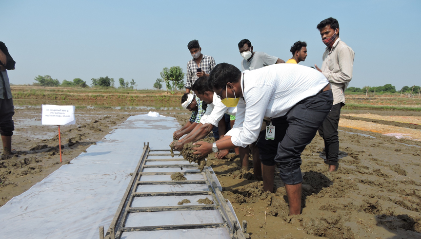 The traditional way of rice transplanting is labor intensive and involves drudgery. Mechanical rice transplanting method is cost effective and operation friendly. In spite of having an edge over the traditional transplanting, adoption rate of mechanical transplanting is low due to one of the major problem is lack of knowledge in growing mat type of nursery among the farmers who are using transplanters. By taking these points DAATTC, Karimnagar has organized Farmers Scientists Interaction meeting on mechanization in rice at Vilasagar (V), Boinpally (M), Rajanna Sircilla Dist. on 23rd November, 2020. Sri.K.Shekar, Coordinator & Scientist (Crop Production) conducted demonstration on raising modified mat nursery for machine transplanting. Explained the method of raising, using of seeder for sowing and measures to be followed during the nursery period to the farmers. This method can save about 1600 Rupees compared to the traditional tray method, about 80 sheets are required to transplant one acre area with transplanter. This method saves time, cost and energy in transplanting rice. With the intervention of DAATTC, Karimnagar in this area approximately more than 300 acres will be under modified mat nursery followed by machine planting by the farmers. In this programme Dr.P.Prashanth, Scientist, Electronic Wing, PJTSAU, Hyderabad has participated and Sri. V.Ratnakar, Scientist (Crop Protection) explained the importance and method of seed treatment for paddy seed and pest & disease management practices to be followed during yasangi season for the farmers, Dr.K.Madan Mohan Reddy, Scientist (ToT) has explained the services for the farmers from the University like Annapurna Krishi Prasara Seva and steps to be followed for PJTSAU You Tube channel subscription which helps the farmers to follow various management practices. Sri.Bhaskar, Assistant Director of Agriculture, Vemulawada Division has emphasized the importance of residue management and mechanization in various crops, available promising varieties and importance of timely protection measures to the farmers, Smt.Maheshwari, Mandal Agriculture Officer, Boinpally (M), AEO Rajitha, staff of the department, Public representatives, Rythu Samanvaya Samithi Coordinator and members, Print and electronic media persons and 60 progressive farmers of the nearby villages were participated. This programme was organized by taking measures for COVID-19.