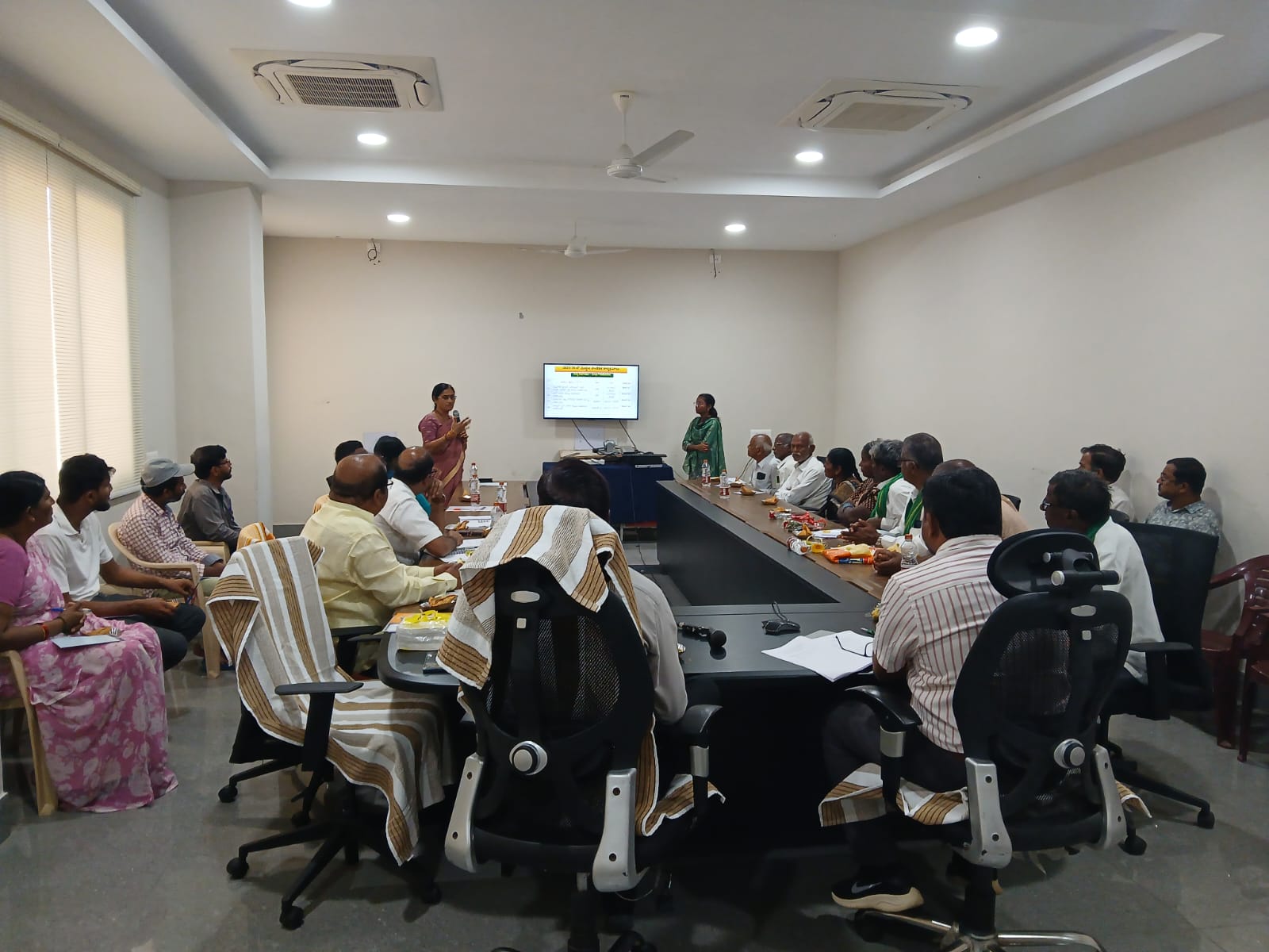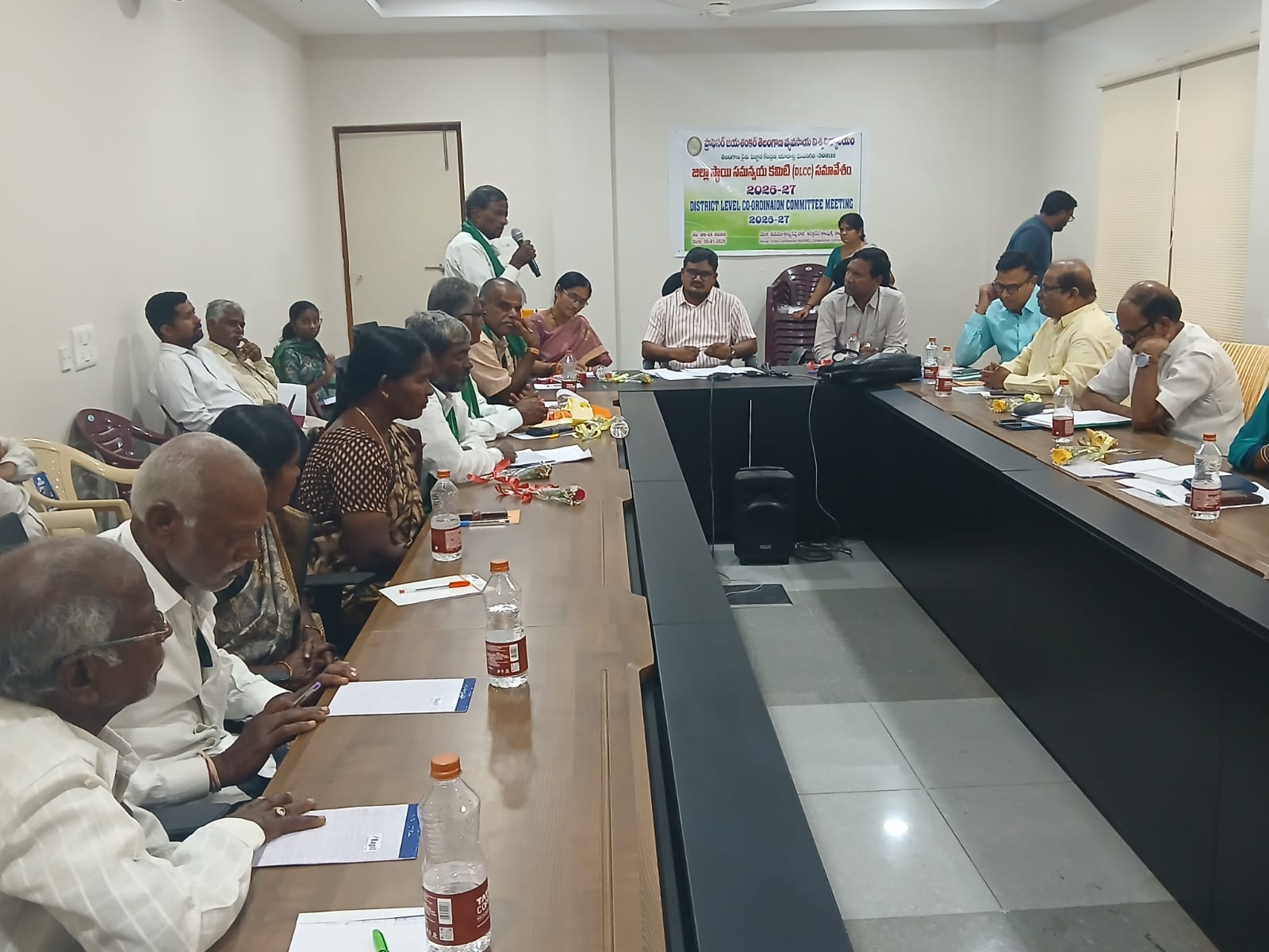 The District Level Coordination Committee (DLCC) meeting was conducted at the Telangana Rythu Vignana Kendram (TRVK), PJTAU, Yadadri Bhuvanagiri district, on 6th January, 2026. The meeting aimed to review past agricultural technical activities and strategize for the upcoming cropping seasons. The meeting was chaired by Dr. K. Chandrasekhar, Assistant Director of Extension (PJTAU), and Dr. L Krishna, Associate Director of Research, Regional Agricultural Research Station (RARS), Palem, Southern Telangana Zone. Dr. D. Sreelatha, Coordinator of TRVK, presented a detailed report on the research results of technical programs, On Farm Trials (OFTs) Frontline Demonstrations (FLDs), and Minikits conducted over 2025-26 year, highlighting the impact of these initiatives on local farming. Dr. K. Chandrasekhar urged farmers to become self-reliant in seed production to avoid the risks of spurious seeds. He emphasized that farmers should come forward to produce quality seeds and sharing them with fellow farmers is the best way to ensure sustainable yields. Dr. Krishna explained the core objective of the DLCC meeting and gathered feedback directly from farmers. He invited suggestions and recommendations from farmers to identify the specific technological interventions required for the formulation of the technical program for the year 2026-27. District Agriculture Officer (DAO) Sri P.V. Ramana Reddy provided information on the importance of Cotton Shredders/government subsidies available to farmers for purchasing this machinery. District Horticulture and Sericulture Officer (DHSO) Smt. Madhavi educated participants on the process of obtaining nursery licenses and shared best management practices for Oil Palm cultivation. Sri Dev Singh, Project Director, ATMA also addressed the gathering. Dr. Ramesh, Assistant Director, Veterinary Department has briefed about Schemes/subsidies available under Animal husbandry scheme. Progressive Farmers & Committee Members Sri Mandadi Siddha Reddy, Sri Kanchi Mallaiah, Sri G. Krishna Reddy, Sri S. Ellaiah, and Smt. S. Venkatamma. farmers from various villages across the district also attended the session, sharing their field-level challenges and suggestions with the scientists and officials.