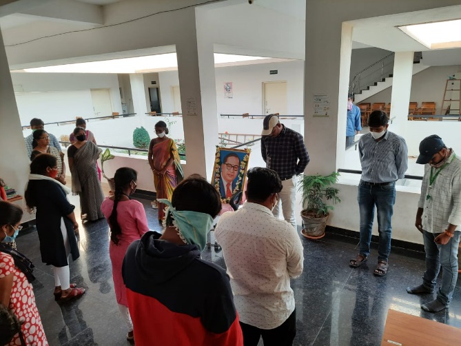 Mahaparinirwan Diwas, the 65th death anniversary of Dr. B.R. Ambedkar was organized at Agricultural College, Sircilla, Rajanna Sircilla District. The officer in-charge of Student Activities, Mr. T. Arunbabu conducted the proceedings of the programme with a brief introduction of the reason behind Dr.B.R. Ambedkar’s death anniversary associated with the word ‘Mahaparinirwan’, which is a sanskrit word meaning ‘body attaining Nirvana’. Nirvana is very difficult to attain and it suggests that one has lived a pure and blessed life. Dr.B.R.Ambedkar’s followers believed that their guru was as influential, pure and blessed as lord Buddha and he did not have any karmic debt remaining because of his great works. This is the reason Dr. B. R. Ambedkar’s death anniversary is referred to as ‘Mahaparinirwan’ Day. Later, the Associate Dean, Dr. Kanaka Durga addressed the gathering and motivated the students to follow the great ideas and ideologies of the eminent personality. She also said that Dr. B. R. Ambedkar was the only person to publish many books, articles and his last manuscript was ‘The Buddha and his Dhamma’ and his soul left his body just a few days after completing his last work. She also suggested the students to be a model and follow the five principles of Buddhism - Wisdom, Kindness, Patience, Generosity and Compassion which can make a person into a better personality and a good human being. All the students, teaching, non-teaching and supporting staff maintained two minutes silence as an honour and remembering his great works. Later the programme was concluded by paying floral tributes to the architect of Indian constitution, Dr. B. R. Ambedkar.