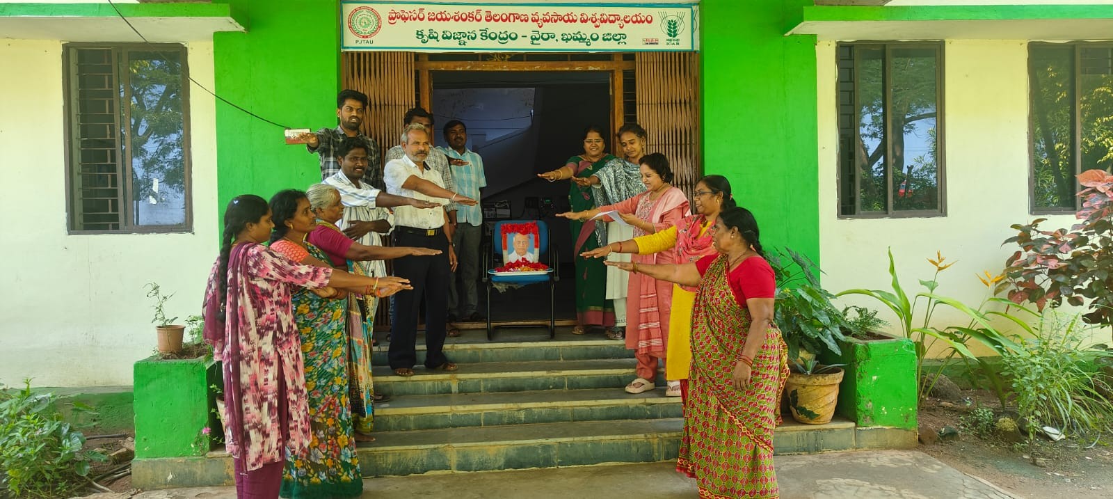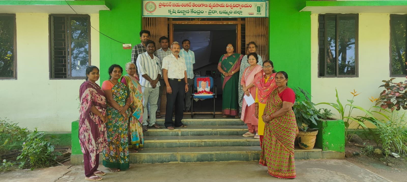 On the eve of 150th birthday of Sardar Vallabhai Patel on 31.10.2025 the staff of KVK, Wyra celebrated Ekta Divas recalling his memorable contribution on this day. With his diplomatic skills, he could maintain unity and integrity of the nation which earned him the title of 'Iron Man of India'. On this occasion, staff paid floral tribute and have taken pledge to rededicate themselves to preserve unity, integrity and security of the nation besides striving hard to spread the message among fellow countrymen. Dr. T. Sucharita Devi, Programme Coordinator explained the significance of this day and gave words of encouragement to walk in the path of unity. Further the Staff of KVK, Wyra read out the pledge. The Scientists Dr. T Pavani, SMS (Crop protection), Smt. P.S.M Phanisri, SMS (Extension) along with other staff participated in the programme.