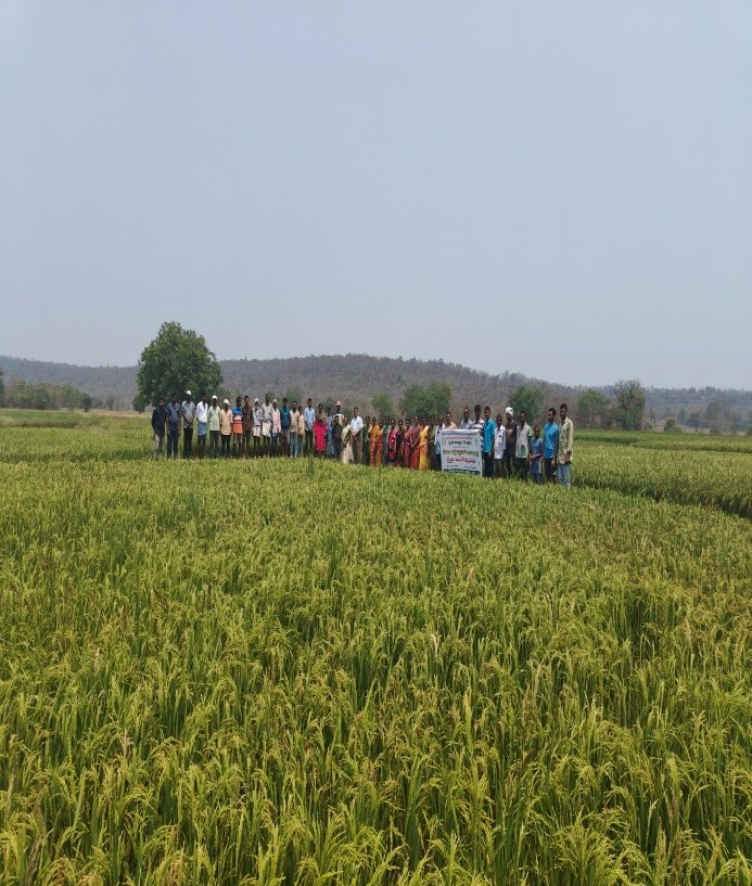 KVK, Malyal conducted a Field Day on “Direct Seeded Rice” under DAPST (Tribal Sub Plan), 2024-25 at Ootla Village of Gudur Mandal on 27-03-2025. On this occasion, the host farmer Sri Guguloth Nehru shared his experiences in direct seeded Rice in terms of labour saving, seed rate saving, weed management, fertilizer management and occurrence of low pest & diseases compared with normal transplanting. Subsequently, some farmers – Sri Guguloth Lachhiram and Smt. Guguloth Susheela also shared their experiences in Direct Seeded technology. Dr. S. Malathi, Programme Coordinator appraised the farmers in the village for adoption of this technology from 1 acre area to 80% of Paddy area in both the seasons. She requested to the farmers to achieve 100% Paddy area under this technology in the village and become model village in the district. She also requested the farmers to take up Sunhemp seed production in Paddy fallow during Yasangi season to become self sufficient as well as to supply neighbouring farmers which is useful for incorporation of Green manure crops preceding to Paddy and Chilli crops. She wished the technologies which were demonstrated by KVK, Malyal in this village like Direct Seeded Paddy, IPM in Chilli and Sunhemp seed production in Paddy fallow should be continued and inspire to neighbouring villages. Sri A. Srinivasrao, ADA, Mahabubabad appraised the farmers for successful adoption of different technologies demonstrated by KVK, Malyal under Tribal Sub Plan Project. He also requested the farmers to focus on agriculture allied sectors like Honeybee rearing, preparation of Laddu’s from Mahua flowers, Backyard poultry and Buffalo Dairy for income generation. Dr. E. Rambabu, SMS (Horticulture), Md. Abdul Malik, MAO, Gudur, Smt. Alekhya, AEO, Gudur cluster, Sri Manoj Kumar, AEO, Boddugonda cluster and 64 farmers and farm women from Ootla & Saraswathi nagar of Gudur Mandal participated in the programme.