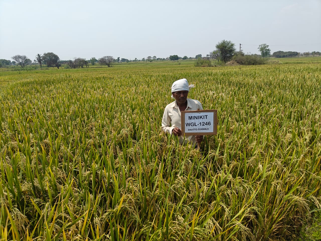 Field day cum awareness programme was organized on the wet direct seeding in rice condition and paddy minikits (WGL 1537 & WGL 1246) by DAATTC, Tornala on 06.04.2024 at Mundrai, Nangunur mandal of Siddipet district. Sri. Shiva Prasad, District Agriculture Officer, Siddipet attended as chief guest to the programme and addressed the farmers about wet direct seeded rice (wet DSR), probably the oldest method of crop establishment, is gaining popularity because of its low-input demand. In our Siddipet around 18,800 acres of wet DSR is being cultivated at present. Farmers should prefer University varieties which are released with based on local problems expressed by the farmers. Sri. J. Vijay (Coordinator) has explained the certain advantages viz., it saves labour, requires less water, less drudgery, early crop maturity, low production cost, better soil physical conditions for following crops and less methane emission, provides better option to be the best fit in different cropping systems. Comparative yields in wet DSR can be obtained by adopting various cultural practices viz., selection of suitable cultivars, proper sowing time, optimum seed rate, proper weed and water management. Later, Dr. V. Venkanna, Principal Scientist, RARS, Warangal addressed the gathering on the different paddy varieties (bold & fine) available in the University. Dr. B. Sathish Chandra, Sr. Scientist, RARS, Warangal have explained about nutrient management in paddy field. Most of the farmers interacted with the Scientists of DAATTC, Tornala and RARS, Warangal scientists and clarified their doubts on stem borer, sulphide injury, deep ploughings, lower yields in paddy recently, green manuring etc., Sri. G. Rajaiah farmer, have explained to the house about the practices he followed in the minikit WGL- 1537 vs check (JGL- 24423) which is 130 days duration, the seed is bold and long like MTU 1010 when compared to JGL 24423 and followed by the field visit by all the farmers. He expressed that the filling of the panicle is complete from starting to end of panicle when compared to other varieties. Sri. N. Karunakar Reddy another farmer from same village has informed that he got 8-10 % higher yield in minikit WGL 1537 in Vanakalam, 2023-24 over check (JGL- 24423). Sri. J. Vijay (Coordinator), Dr. Ch. Pallavi, Scientist (CP), Smt. V. Geetha, Mandal Agriculture Officer (Nangunur), AEOs (A. Ashok, T. Prem Sagar, Ch. Shireesha, D. Meerabai, R. Varun Varma, A. Rekha, J. Sai Varma), 40 farmers have participated in the programme. Another minikit WGL 1246 which is in 3rd year of minikit was also visited by around 20 farmers along with Scientists of RARS, Warangal & DAATTC, Tornala, Smt. Vineela, AEO in Sri. M. Ramulu field at Tornala (V), Siddipet (R) mandal. He is also expecting very good yields in this season and variety is good.