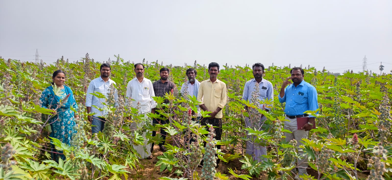 To enhance the area under rabi castor, the AICRP on Castor scheme at the Regional Agricultural Research Station (RARS), Palem conducted 150 Front Line Demonstrations (FLDs) on farmers’ fields with emphasis on adoption of improved production technologies particularly high-yielding cultivars to improve productivity and profitability. In addition, under the Scheduled Caste Sub-Plan (SC-SP) also 50 demonstrations were organized to promote rabi castor cultivation through the dissemination and adoption of improved technologies. In this context, a team of scientists from the AICRP on Castor comprising Dr. K. Sadaiah, Scientist (Plant Breeding), Dr. Kadasiddappa M.M., Scientist (Agronomy), Dr. V. Divya Rani, Scientist (Plant Pathology), and Mrs. G. Madhuri, Scientist (Entomology), visited the farmers’ fields at Panchalingala and Makthal (V & M) of Narayanpet district on 04.02.2026. During the visit, the crop was at the primary to secondary spike stage. Most of the farmers had sown the crop during October, 2025 and were following the recommended management practices properly. It was also observed that the incidence of pests viz., tobacco caterpillar, semilooper and leafhopper was very low and remained below ETL levels. Further, the farmers were advised on necessary management practices for sucking pests, along with precautions to be followed during harvesting and post-harvesting operations.