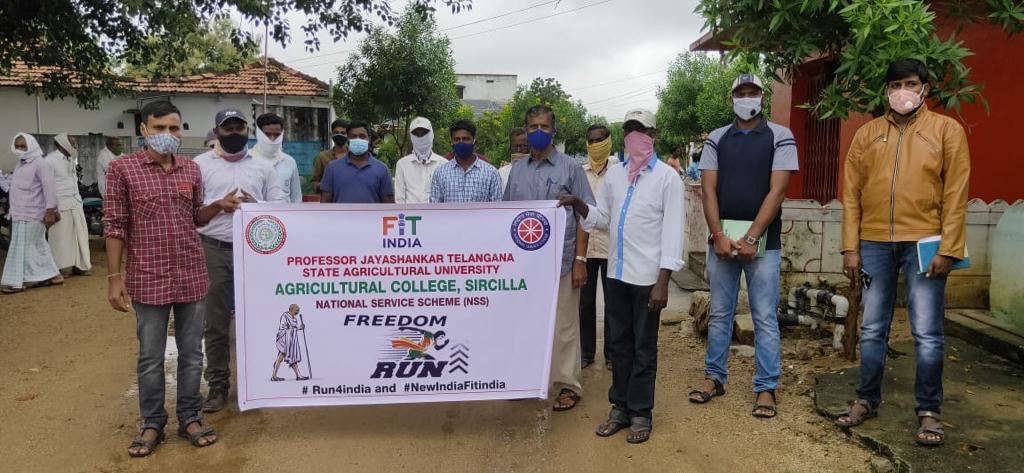 The Agricultural College Sircilla organized Fit India freedom run programme at its adopted village on 14 Sept, 2020. The faculty, staff of the college including the farmers of adopted village participated the programme. Dr. K. Rajesh, NSS programme officer has given a brief account on idea and significance of conducting the programme in the village. He said that fit India freedom run impacts minimizing obesity, stress, diseases and anxiety thereby people become active, alert in performing daily routine works including farm operations. The concept of the programme is it can be run anywhere and anytime. T. Arunbabu, OISA opined that it is an unique programme and a better opportunity for all of us to improve our health status and building healthy India. The village Sarpanch, faculty and staff of Agricultural college, Sircilla including village youth, farmers have participated in the programme. Dr. R. Sathish, OIAM thanked all the participants and urged to make our country’s path towards fitness and wellness.