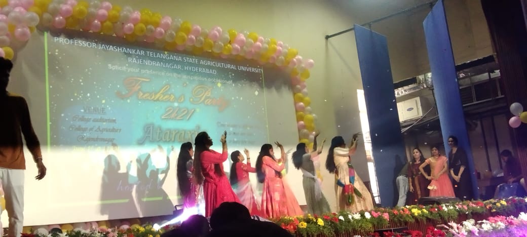 The second year B.Sc. Agriculture students of the College of Agriculture, Rajendranagar extended a rendezvous freshers welcome to the newly joined freshers of College of Agriculture, Rajendranagar and Sircilla on 01.06.2022 at the College auditorium. The freshers welcome party was organized in the august presence of Dr Seema, the Dean of Agriculture and hon’ble Member, Board of Management PJTSAU who was the chief guest,while Dr J Satyanarayana, Dean of Student Affairs and Dr Padmaja, the Director of Polytechnic and Dr C Narendra Reddy, Associate Dean, College of Agriculture Rajendranagar were the guests of honour. The chief guest and the guests of honour addressed to the students on the occasion. The programme included sizzling performances by the by the freshers and lot of fun embedded events. P.Ramakrishna and G. Nikitha from the freshers were adjudged as the Mr and Ms Fresher respectively.OISA, OIAM, Professors and Head of the Department, senior faculty members, non-teaching staff and students attended the programme.