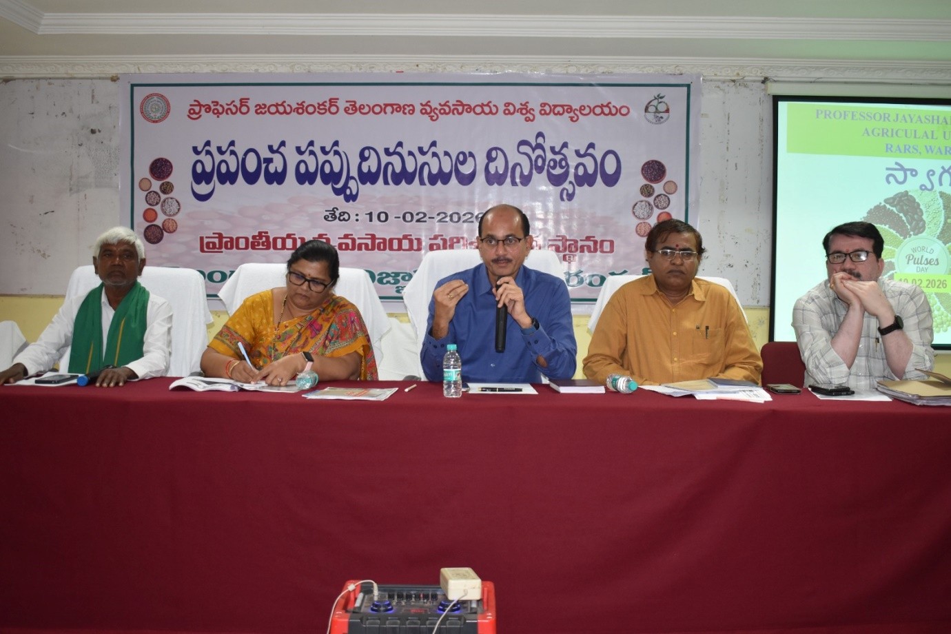 International Pulses Day were organized by the Regional Agricultural Research Station and Telangana Rythu Vigyan Kendra of Warangal on 10th February,2026. Dr. R. Uma Reddy, Associate Director of Research, Central Telangana zone, who participated as the chief guest, spoke about how pulses are useful in providing nutrients and proteins in our daily life and also that their cultivation makes the soil fertile. Dr. A. Vijaya Bhaskar, Co-Ordinator, Telangana Rythu Vigyan Kendra, Warangal, speaking on the occasion of International Pulses Day through a “Power Point Presentation”, said that pulses are the “backbone” of sustainable agro-food systems and that “nurturing soils and people”.Pulses are essential for a green future and “Healthy soils, healthy environment, healthy people, healthy planet”he suggested. Later, the Principal Scientist of Dr Venkat reddy , Dr Rukhmini devi , Dr A.Posadri and Pulse section scientists of the research station thoroughly explained farmers about the profitable pulse crops that farmers should take up, nutritive values ,market demand,new varieties,the fertilizer management, crop protection measures and modern methods for achieving high yields in pulses and clarified their queries. As part of this program,several farmers who are growing pulses and getting high yields were felicitated.In the“Cooking Competition” organized as part of this program, the students were felicitated and certificates of appreciation were given to the students for the various dishes prepared with pulses.On the occasion of International Pulses Day, pulses were distributed to orphans and the poor. In this program,Warangal and Hanumakonda districts agricultural officers, agricultural scientists, RAWEP students and farmers participated in large number and made it a success.