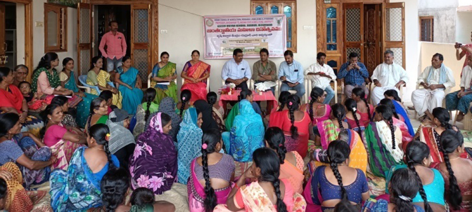 Krishi Vigyan Kendra, Rudrur has celebrated International Women’s day on 08.03.2021 (Monday) and also conducted a Group discussionon “Problems faced by Women farmers and Possible Solutions” at Anthapur Thanda village of Varni Mandal. The event began with the welcome address by Dr. S. Naveen Kumar, Programme Co-ordinator, KVK, Rudrur remarking the gathering as a great opportunity to deliver positive change for women in rural areas. He further detailed that it is important to consider everyday as a women’s day, as the women are blessed with more strength to face difficult challenges in our day to day lives with an ease in right to plan perfect decision making. As Krishi Vigyan Kendra is working for the welfare of women in every aspect, it is important for the women to stay in contact with the Scientific staff of KVK and get aware of the schemes & subsidies of Telangana state Govt. and adopt livelihood oppurtunities provided by KVK, Rudrur under Tribal Sub Plan and other training programmes that are conducted as per the Mandates of KVK. He also said that the Scientists of KVK, Rudrur will all time be available to bring out the significance of the hardwork done by progressive women farmers in the reality and develop a frame work of action plan for the interested women who are willing to improve their livelihood oppurtunities. Sri. G. Jagram, DGM, BSNL while addressing to the women of AnthapurThanda expressed his gratitude to KVK, Rudrur for adopting AnthapurThanda under Tribal Sub Plan. As the Training programmes and Capacity Building programmes of KVK include the developmental activities of the village, it is important for the women to come forward and utilize the provided oppurtunitiesfor their welfare. The women should form into groups of 10 members each for sharing their problems and discussions should be held for bringing out the right solutions. Smt. G. Padma, Sarpanch, AnthapurThanda appealed to the participants to actively participate in the programmes organized by KVK as it helps to develop their skill and generate new employment oppurtunities in the present challenging situations. Smt. Chandrakala, Anganwadi teacher, AnthapurThanda shared that women are way forward in every aspect of work, so it is necessary to allow the girl child in aiming higher studies and becoming self independent and economically stable to draw out the gender disparity situation. Dr. M. Swetha, SMS, Agril. Extension, KVK, Rudrur expressed that to see a change in the village, the change should first start from our home itself. The women should adopt the new scientific technologies, training and skill development activities of KVK to bring a positive change in their rural livelihood. Smt. Radha, Women beneficiary under Tribal Sub Plan of KVK, Rudrur shared her opinion that there is a need for Maggam work machines as a part of training programmes under KVK as it will be helpful for them to increase income generating opportunity. Thereafter, Vegetable seedkits were distributed to the women of Anthapur thanda under Tribal Subplan of KVK, Rudrur. Dr. B. Venkata Rajkumar detailed about the importance of kitchen garden as it is advantageous to grow nutritive vegetables in the back yard of house and saving the expenditure on their purchase from market. Later, Group discussion was held between the Women of Anthapur thanda village and Scientific staff of KVK, Rudrur to understand the problems faced by women farmers in agriculture. Finally, the event ended with the Felicitation to Progressive women of the village and a thanks giving note by Dr. M. Swetha, SMS, Agril. Extension. A total of 106 participants have attended the programme.