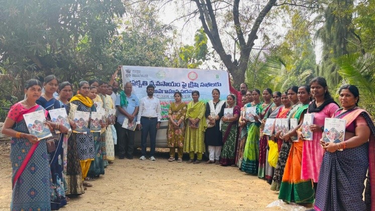 A Training Programme on “Natural Farming” under National Mission on Natural Farming Project 2025-26 was organized by Krishi Vigyan Kendra, Kampasagar in collaboration with Department of Agriculture, Nalgonda for 5 days from 27.01.2026 to 31.01.2026 at KrishiVigyan Kendra, Kampasagar, Thripuraram mandal Nalgonda district. The training was inaugurated on 27.01.2026 with a welcome address and Lighting of Lamp. Sri. Sravan kumar District Agriculture officer, Nalgonda acted as chief guest and he highlighted the importance of Natural farming for Sustainable agriculture. Dr. K. Chandrashaker, Programme coordinator, KVK, Kampasagar acted as chairperson for the programme and he highlighted the key issues of Natural farming for Sustainable agriculture, the vital role of Krishi Sakhis in its promotion and the role of Krishi Sakhis in advisory services and action planning. Dr. N. Lingaiah, Pricipal Scientist and Head, ARS, Kampasagar explained about principles of Natural Farming. Sri Anji Reddy, Progressive farmer, Nalgonda shared his experience in Natural farming. The inaugural session was concluded with formal vote of thanks. The technical session of the programme on first day (27.01.2026) was explained by Dr. K. Chandrashaker, SMS(Crop Production) on Key aspects of Natural farming and soil health management. On second day (28.01.2026) Smt. A. Ramulamma SMS (Plant Protection) KVK, Kampasagar was explained about Role of Krishi Sakhis in National Mission on Natural Farming Project and Pest Management techniques in Natural Farming. On third day (29.01.2026) Dr. T. Bharath kumar, SMS(Crop Production) , KVK, Bhadradri Kothagudem participated as resource person and delivered the lecture on Integrated farming system. A practical session on Bio inputs preparation was taken by N. Somaiah, Farmer master trainer, Neelaigudem. On fourth day (30.01.2026) Dr. Lavakumar, Retd. Scientist, delivered the lecture on preparation of Bio fertilizers and its role in Natural Farming. A practical session on Bio inputs preparation was taken by V. Anjaneyulu, Organic farmer, Marrigudem. On 5th day (31.01.2026) Conducted a Field visit to Anjasri Natural Farm in Charlapalli village. The host farmer V. Anjireddy shared his journey and experience to trainees and explained about his marketing strategy of natural farm produce. Conducted valedictory session and distributed training manuals to the participants. In this programme, Sri. Sravan kumar District Agriculture officer, Nalgonda, Dr. N. Lingaiah, Pricipal Scientist and Head, ARS, Kampasagar, Dr. K. Chandrashaker, Programme coordinator, Smt. A. Ramulamma, SMS (Plant Protection) Smt. T. Himabindu, SMS (Horticulture), and 30 no. of Krishi Sakhis, MAOs and AEOs of Natural farming clusters, were participated.