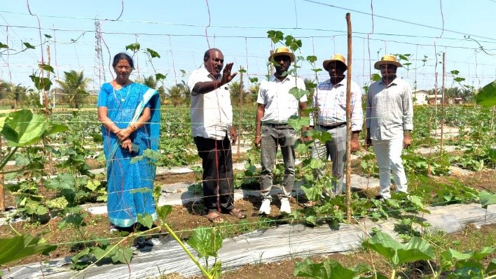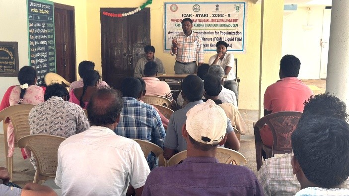 Krishi Vigyan Kendra Bhadradri Kothagudem Programme Coordinator Dr. T. Bharath along with Scientists Dr. N. Hema Sarat Chandra and B. Shiva, accompanied by Sri. Ravi, Managing Director of Ravi Hybrid Seeds visited watermelon fields maintained by Ravi Hybrids in 75 acres at Apparaopet Village, Dammapeta Mandal, Bhadradri Kothagudem District on 20.02.2026. They provided technical guidance on honeybee rearing and precautions to be taken for effective pollination. Later, the team organized an awareness programme on fermented organic manure (FOM/ LFOM) at Maddulagudem Village in Dammapeta Mandal, followed by a field visit to a coconut–cocoa intercropping demonstration plot.