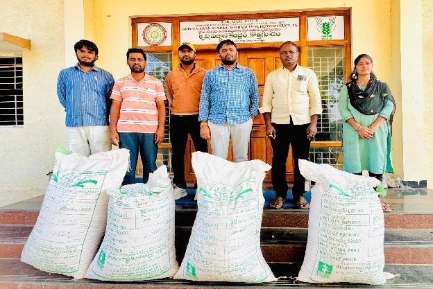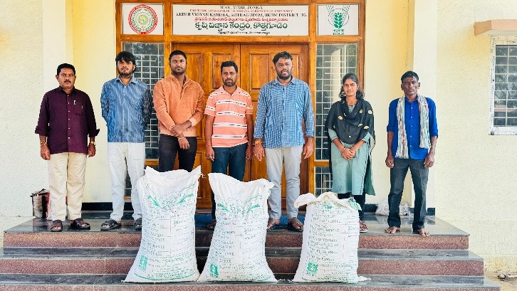 Krishi Vigyan Kendra, Bhadradri Kothagudem organized a Groundnut seed distribution programme at Krishi Vigyan Kendra on 08.12.2025 under the Front-Line Demonstration (FLD) of the Vasista variety, supported through the Tribal Sub Plan (TSP). As part of this initiative, a total of 100 kg of quality Groundnut seed was distributed to selected tribal farmers to promote improved crop productivity and adoption of high-yielding varieties in the region. The programme was led by Dr. T. Bharath, Programme Coordinator, who highlighted the importance of demonstrating superior crop varieties at the farmer level to enhance income and resilience. Dr. N. Hema Sarat Chandra and Sri B. Shiva, Scientists from KVK, also participated and interacted with the farmers, explaining best agronomic practices, seed treatment methods, and timely crop management for achieving better yields with the Vasista variety.