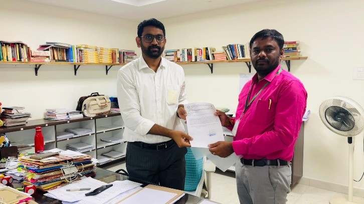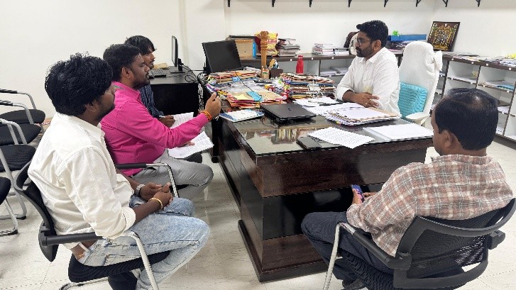 KVK Bhadradri Kothagudem team met Sri. Jitesh V. Patil, IAS, District Collector and Magistrate, Bhadradri Kothagudem. Dr. T. Bharath, Programme Coordinator briefed on various ongoing activities and projects undertaken by the KVK, highlighting their significant contributions towards the welfare of the farming community. The District Collector appreciated the dedicated efforts of the KVK team in providing timely advisories, demonstrating improved technologies, conducting capacity-building programmes and promoting sustainable agricultural practices that have positively impacted farmers’ productivity and livelihoods. During the interaction, issues related to the approach road and land of the KVK were also discussed. The District Collector assured that he would visit the KVK on the coming Tuesday to review and discuss these matters in detail. The meeting concluded with appreciation from the Collector for the KVK’s continued commitment to serving the farming community. Dr. N. Hema Sarat Chandar and B. Shiva also participated in the programme.