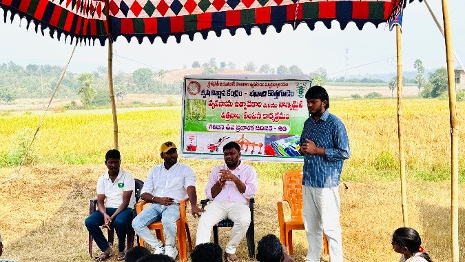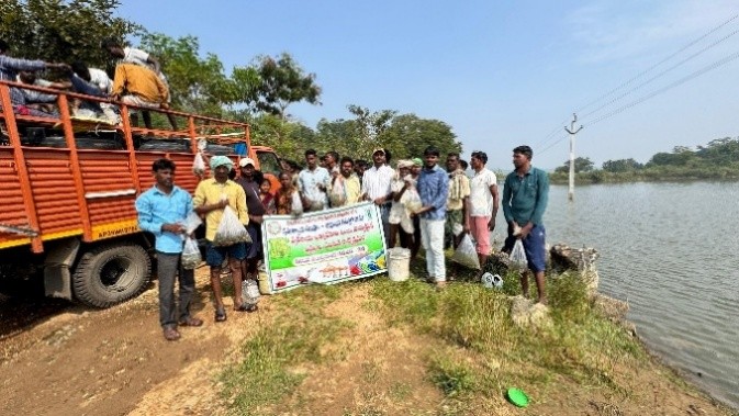 Krishi Vigyan Kendra, Bhadradri Kothagudem conducted a Pre-Rabi Awareness Programme cum Distribution of Fish Fingerlings under the Tribal Sub Plan at Pubelli Village, Yellandu Mandal, Bhadradri Kothagudem District on 05.12.2025. During the programme, Dr. T. Bharath, Programme Coordinator briefed the farmers on various Krishi Vigyan Kendra activities and emphasized the importance of utilizing the benefits provided for enhancing livelihood and agricultural productivity in tribal communities. As part of the programme, the team visited the community tank maintained by 50 tribal farmers, where 15,000 fish fingerlings were released to promote inland fisheries and improve livelihood opportunities. The programme was attended by Dr. T. Bharath, Programme Coordinator, Dr. N. Hema Sarat Chandra, SMS (Extension), Sri B. Shiva, SMS (Horticulture) along with 50 farmers from the village.