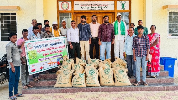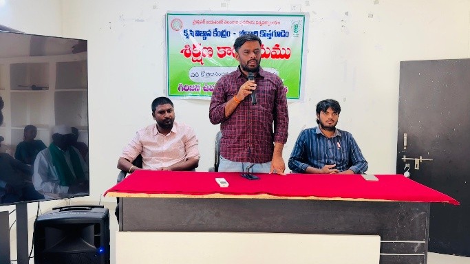 Krishi Vigyan Kendra, Bhadradri Kothagudem organized a training programme on the Application of ICT in Agriculture at the KVK campus on 10.12.2025. The programme was followed by the distribution of Paddy seed variety KNM-1638 under the Tribal Sub Plan. During the session, Programme Coordinator Dr. T. Bharath elaborated on the importance of ICT tools in modern agriculture and provided guidance on effective paddy nursery management. Dr. N. Hema Sarat Chandra, SMS (Extension) and B. Shiva, SMS (Horticulture) also contributed to the programme. A total of 25 farmers actively participated in the event.