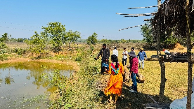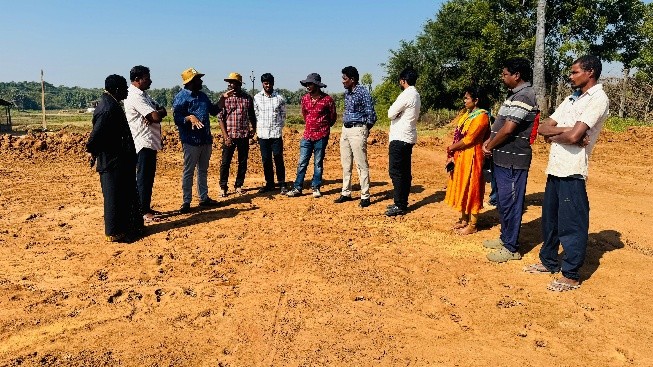 As per wish of District Collector, Bhadradri Kothagudem, Krishi Vigyan Kendra, Bhadradri Kothagudem Programme Coordinator Dr. T. Bharath along with Dr. N. Hema Sarat Chandra, SMS (Extension) and B. Shiva, SMS(Horticulture) visited the Integrated Farming System (IFS) model preparation site. The team was accompanied by the District Horticulture & Sericulture Officer, Project Director (DRDA), APD, APM, Dr. Harsha (Ravi Seeds) and the CC Collector. During the field visit, the officials assessed the ongoing activities, reviewed land utilization and provided a clear layout plan and effective strategy for the development of a 2.5-acre IFS model. The team offered technical guidance on resource integration, efficient land use, crop planning, water management and incorporation of allied enterprises to enhance farm productivity and sustainability.