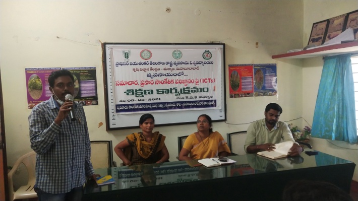 A Training Programme on “Use of different ICT tools in Agriculture” was conducted by Krishi Vigyan Kendra, Malyal at KVK office on 09-03-2021. The programme was sponsored by ATMA, Department of Agriculture, Mahabubabad district.The programme was chaired by Dr. S. Malathi, Programme Coordinator, KVK, Malyal. Dr. N. Kishore Kumar, SMS (Extension) explained about “different ICT tools in Agriculture like, Mobile Apps, Portals, different YouTube channels in Agriculture and allied sectors, given emphasize on use of different mobile Apps in improving the productivity and to reduce the cost of cultivation.Dr. S. Malathi, Programme Coordinator, KVK, Malyal addressed the gathering about importance of mobile apps and role of different mobile apps in solving the problems in the farm itself by the farmers themselves by getting expert advice from the gadgets. Later, there was a farmer – Scientist interaction, in which Smt. A. Ramulamma, SMS (Plant Protection) answered to the queries on “pest and disease management in present crops”. Dr. E. Rambabu, SMS (Horticulture) explained about present scenario of Horticulture crops in the district and given remedial measures in Horticulture and vegetable crops in the present situation. Sri B. Kranthi Kumar, SMS (Crop Production) explained about importance of summer Pulses and role of soil testing in judicious use of the fertilizers in different crops.Forty five number of farmers from different Mandals of Mahabubabad district attended the training programme.