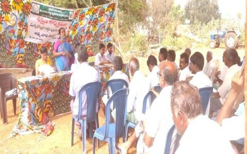 A farmers’ training programme on “Fall Army Worm management in Maize” was conducted by Krishi Vigyan Kendra, Malyal at Kollapuram Village, Gudur Mandal, Mahabubabad district on 28-01-2021. The Programme sponsored by ATMA, Department of Agriculture, Mahabubabad district, was chaired by the Village Sarpanch Sri P. Sudhakar Rao. Smt. A. Ramulamma, SMS (Plant Protection) explained about the management of fall army worm in Maize. She urged the farmers to avoid bio products and go for integrated management of the invasive pest. Dr. E. Rambabu, SMS (Horticulture) briefed the farmers about Chilli pest and disease management. Dr. S. Malathi, Programme Coordinator, KVK, Malyal addressed the house, gave tips for crop management in Yasangi Rice under present situation. Responding to the request made by the farmers, the programme coordinator explained about high density planting system in Cotton and answered to the queries raised on use of bio-products, alternate methods of planting in Rice. Sri P. Sudhakar Rao, village sarpanch, Kollapuram village opined that the programme is the need of the hour as in the village, fall army worm incidence is observed currently and such timely training programmes and technical inputs from scientific staff would definitely help in improvement of agricultural practices. Above 32 farmers attended the programme. The programme was also followed by a visit to maize fields in the village.